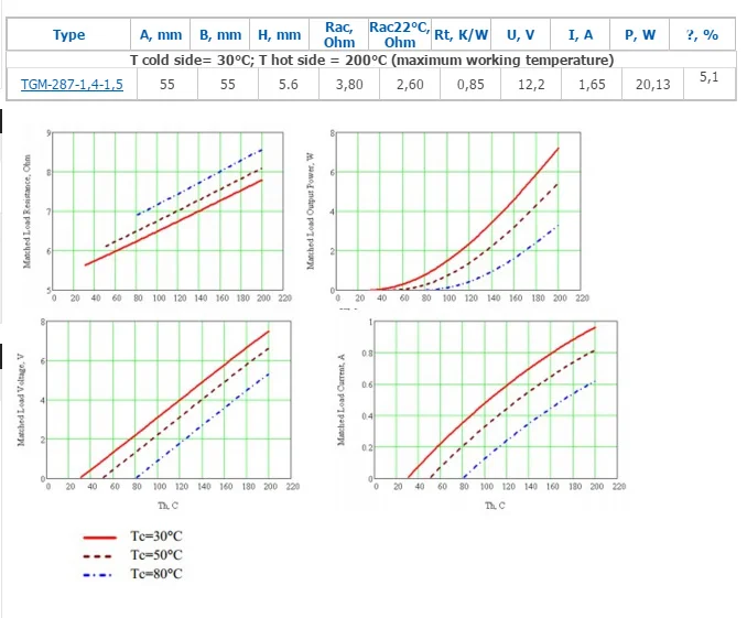 TGM-287-1.4-1.5 генерирует электричество 15V1.65A 24 Вт термогенератор термоэлектрический модуль с сопротивлением температуре 230 градусов