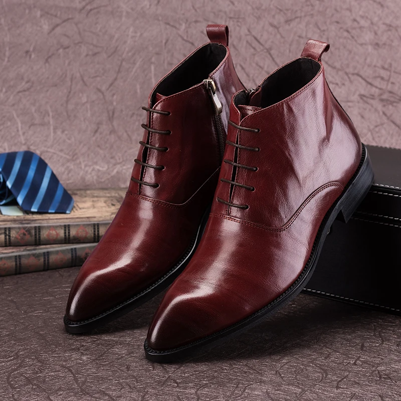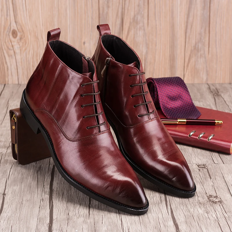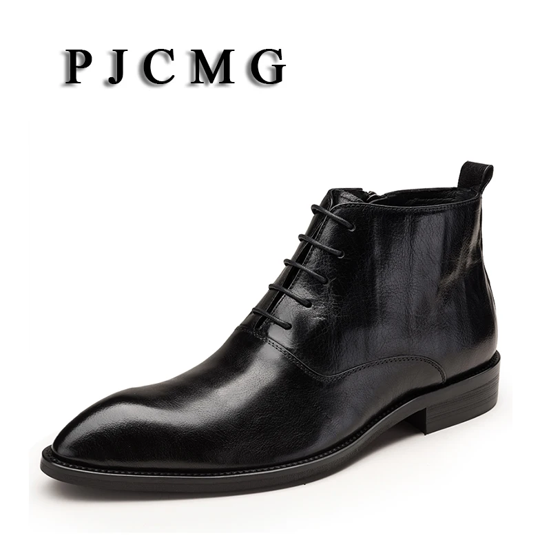 Новые модные черныекрасные ботинки PJCMG Arivel из натуральной кожи со шнуровкой и острым носком, деловые повседневные ботильоны для мужчин, свадебные ботинки