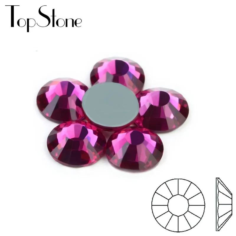 TopStone роскошные стразы с горячей фиксацией фуксия розовый персиковый цвет железо на плоской задней части Горячая фиксация клей на камни для изготовления платьев