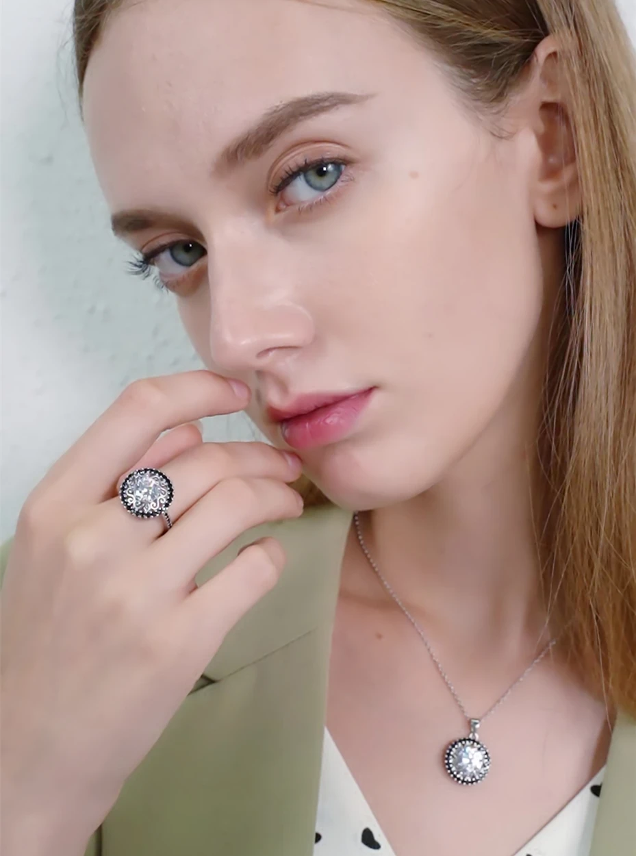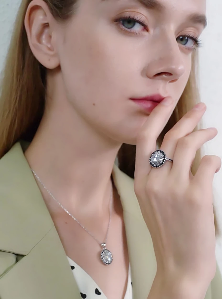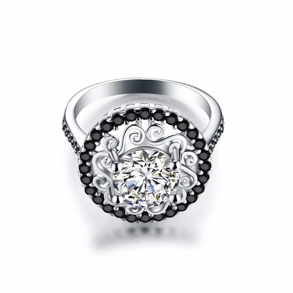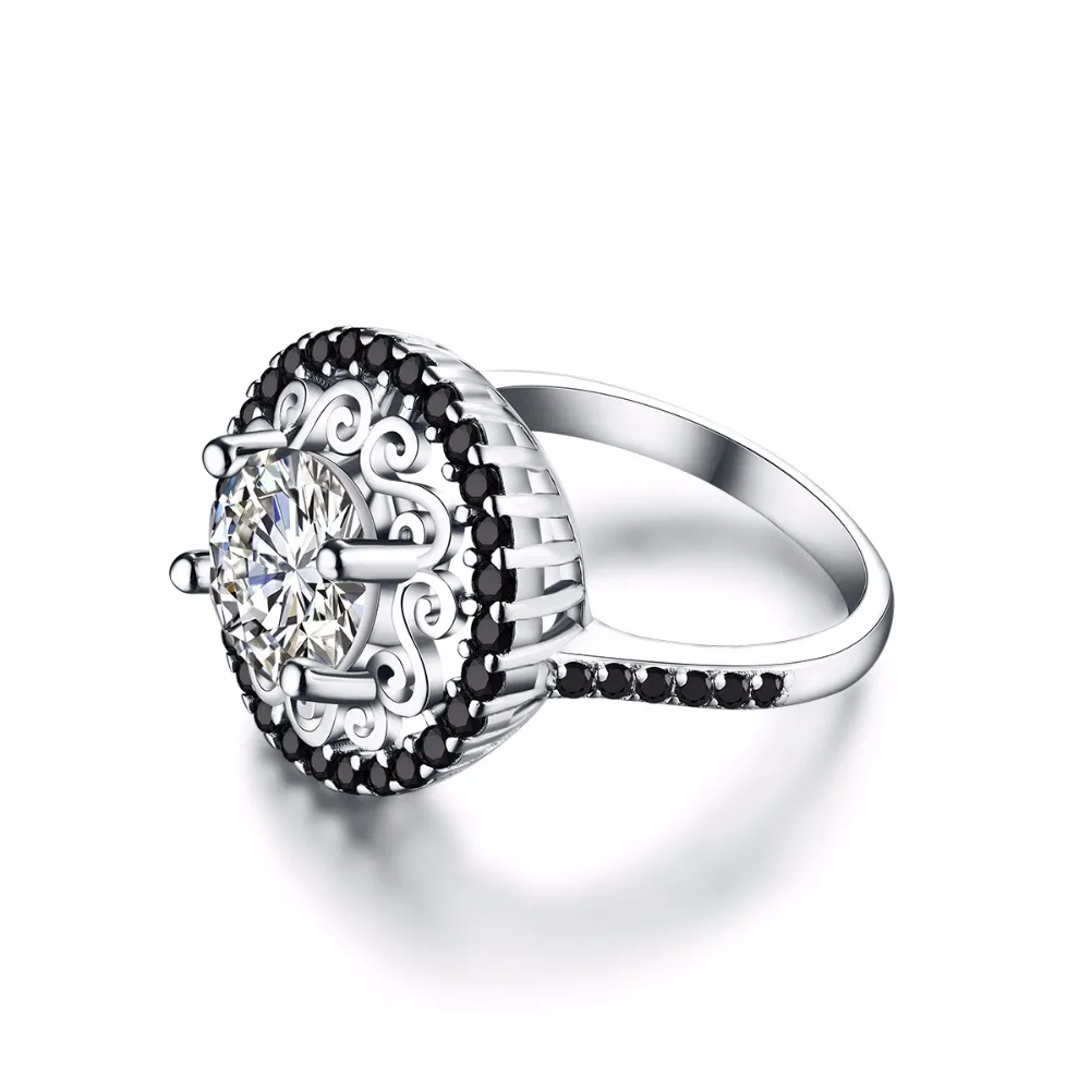 Женское кольцо из серебра 925 пробы, с черной шпинелью