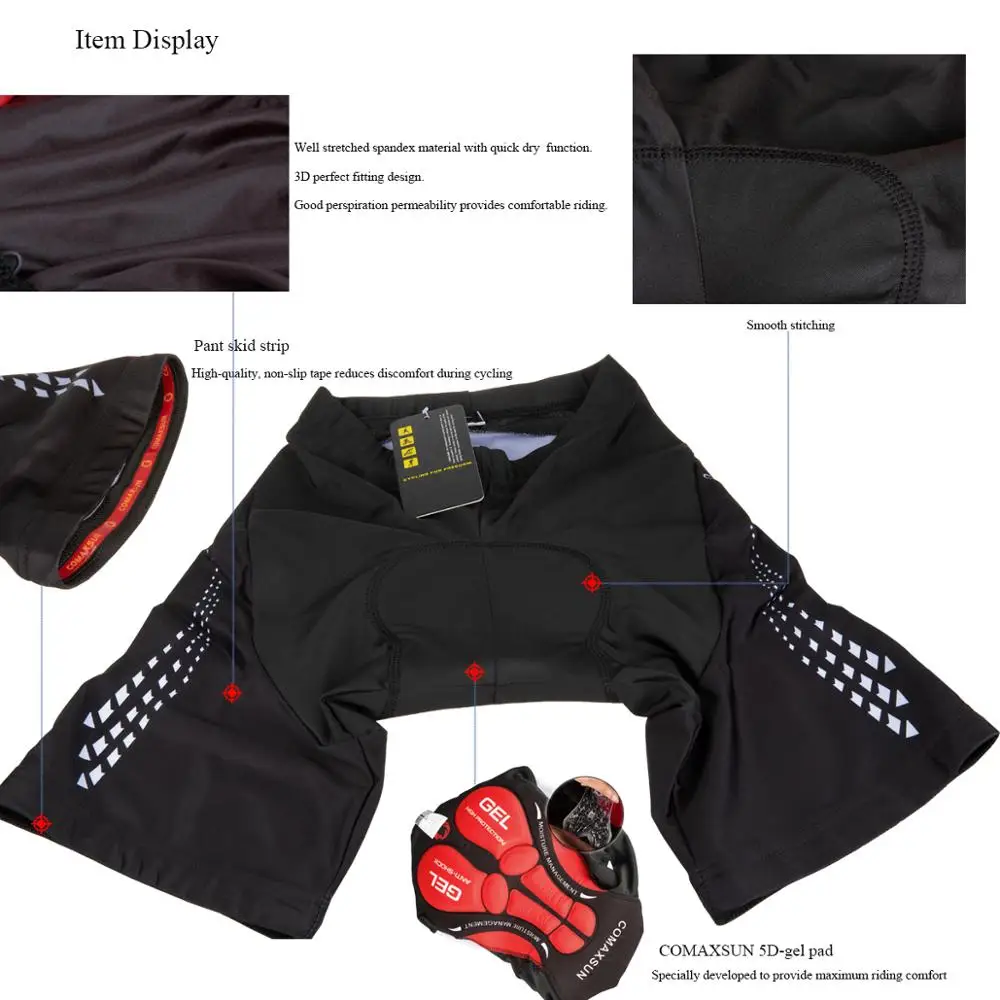 Мужские шорты для велоспорта COMAXSUN, с 3D подкладкой, для езды на велосипедевелосипеде, для активного отдыха, спортивные, плотные, в 6 стилях