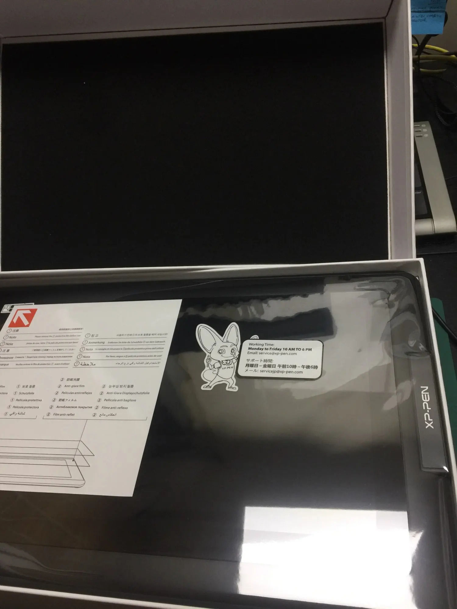 Ждали почти 1,5 мес. Кроме того, пришлось доплатить таможенных платежей порядка 17%. Запакован очень хорошо. Не совсем понятен принцип калибровки стилуса и не нашли как настраивается рабочая область. В результате нет возможности пользоваться полосой прокрутки внизу экрана, т.к. на стилус она не реагирует. Дисплей очень хорошо передает цвета, хорошая яркость. В целом впечатление очень хорошее, подарок получился на славу.