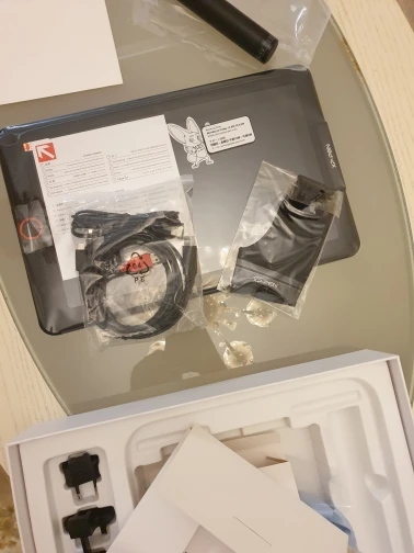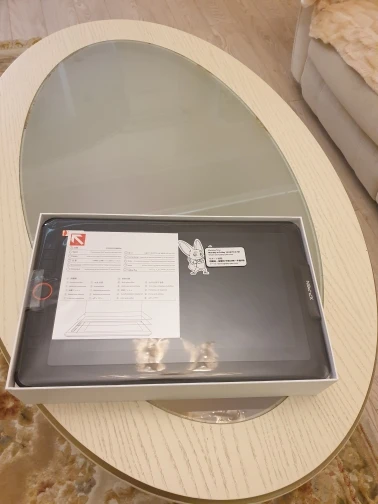 это мой первый графический монитор, поэтому долго выбирала и присматривалась и в итоге выбрала этого красавчика. Дошел он мне в Москву за три дня курьером, к этому нареканий нет. Из-за этого коробка не мята и не потребовала много упаковочных штук. Сам планшет добротно собран, не люфтит. Не понятно правда зачем так много большого черного пространства пустого которое не работает, но ладно, мелочь, все равно места ровно столько сколько заявлено. Дефолтные настройки насыщенности выкручены очень сильно, надо перенастраивать. И да, подставка которая шла в комплекте - лютый отстой, не советую, а та что идет за три тысячи дополнительно таких денег не стоит, настольный мольберт или этюдник дешевле будет. в целом, планшет превосходен, я покупала его 23.11.2020 за 17000 со всеми скидками, купонами и промокодами и довольна возможно дополню отзыв после того как порисую какое-то время