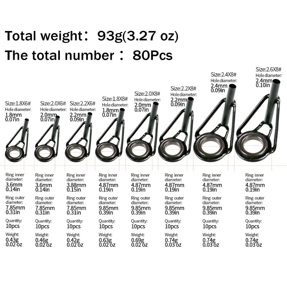 80 шт.лот, 1,8 мм-2,6 мм, направляющие для удочек, ремонтный набор из нержавеющей стали, керамическое кольцо, наконечники для удочки, сменные детали
