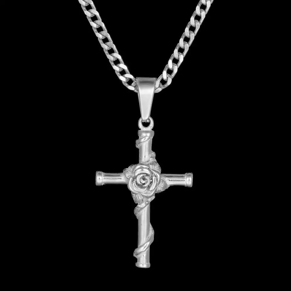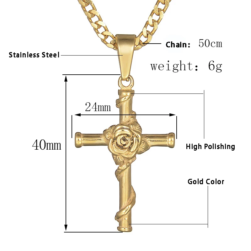 Женская цепочка из нержавеющей стали, крестообразная цепочка с подвеской в виде розы, подарок на Рождество