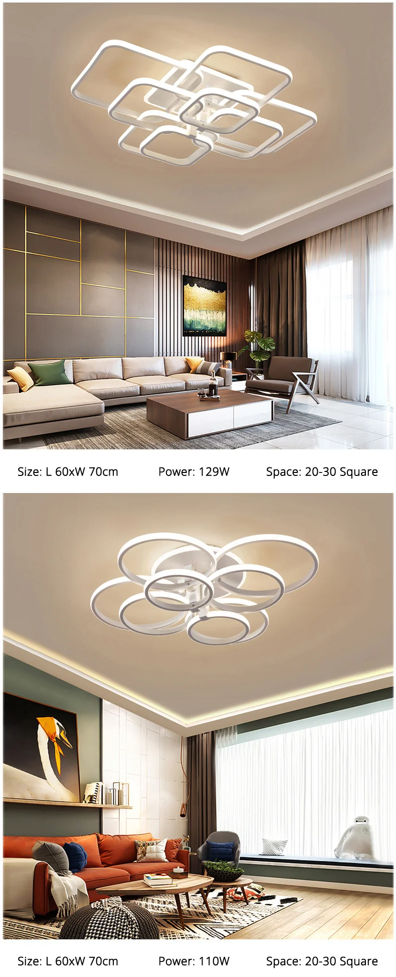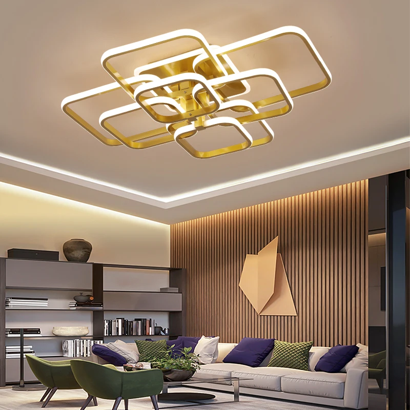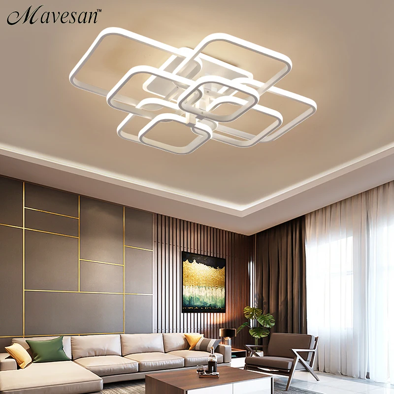 Акриловые Потолочные светильники, квадратные кольца, современная светодиодная потолочная лампа для гостиной, спальни, домашнего AC85-265V