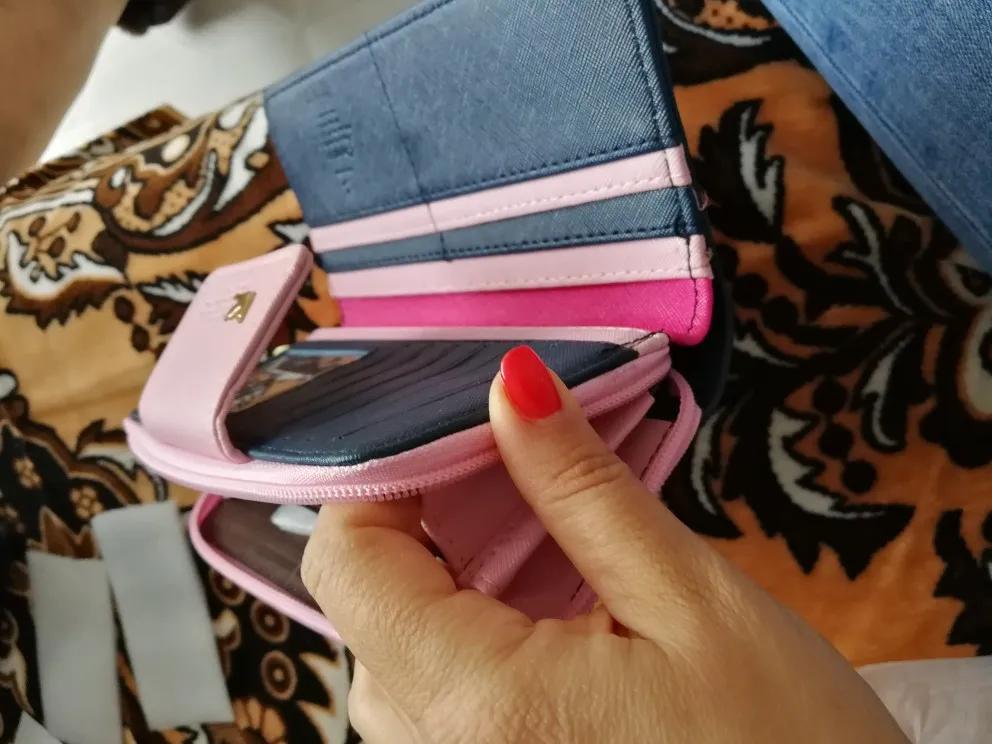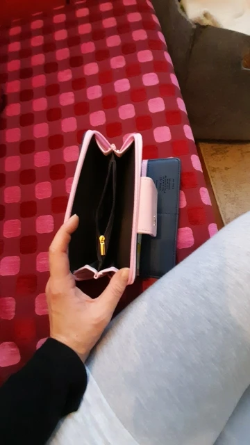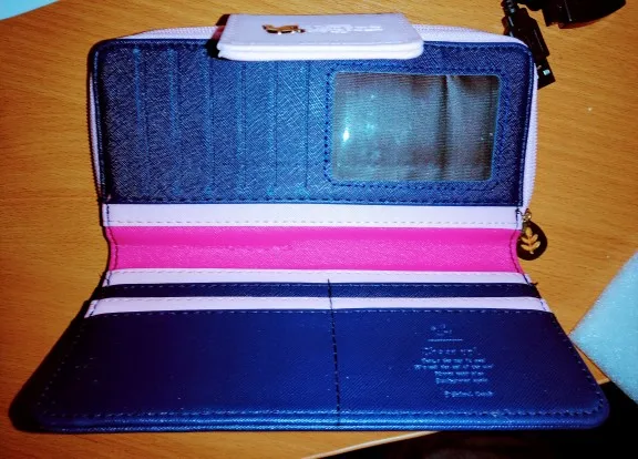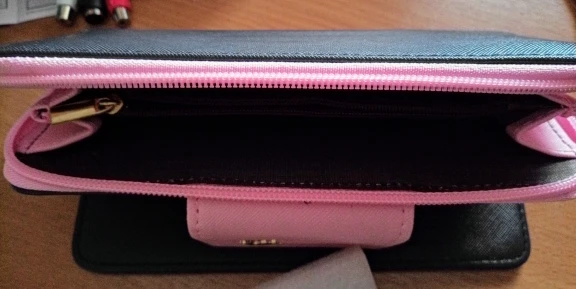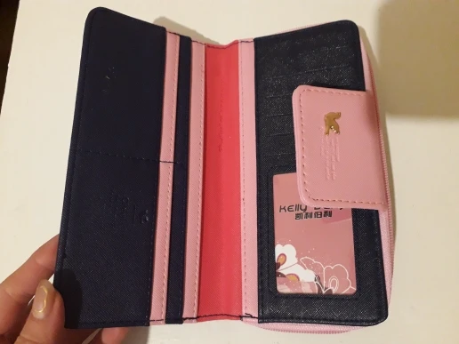 Szeretem ezt a pénztárcát, ez már a második, mert az első már nagyon elhasználódott. Nagyon jó benne a kártyák elrendezése, sok fére bele.