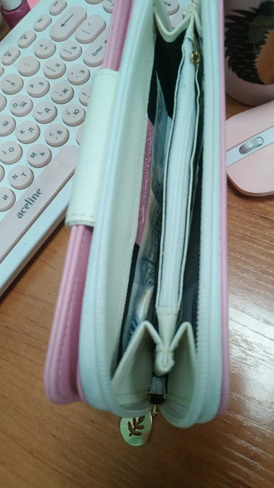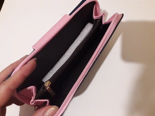 очень хороший и милый кошелек, правда отдел для мелочи хотелось бы побольше, но это, в принципе не мешает, тк есть второй кармашек