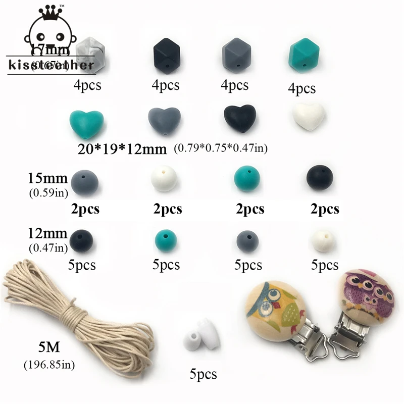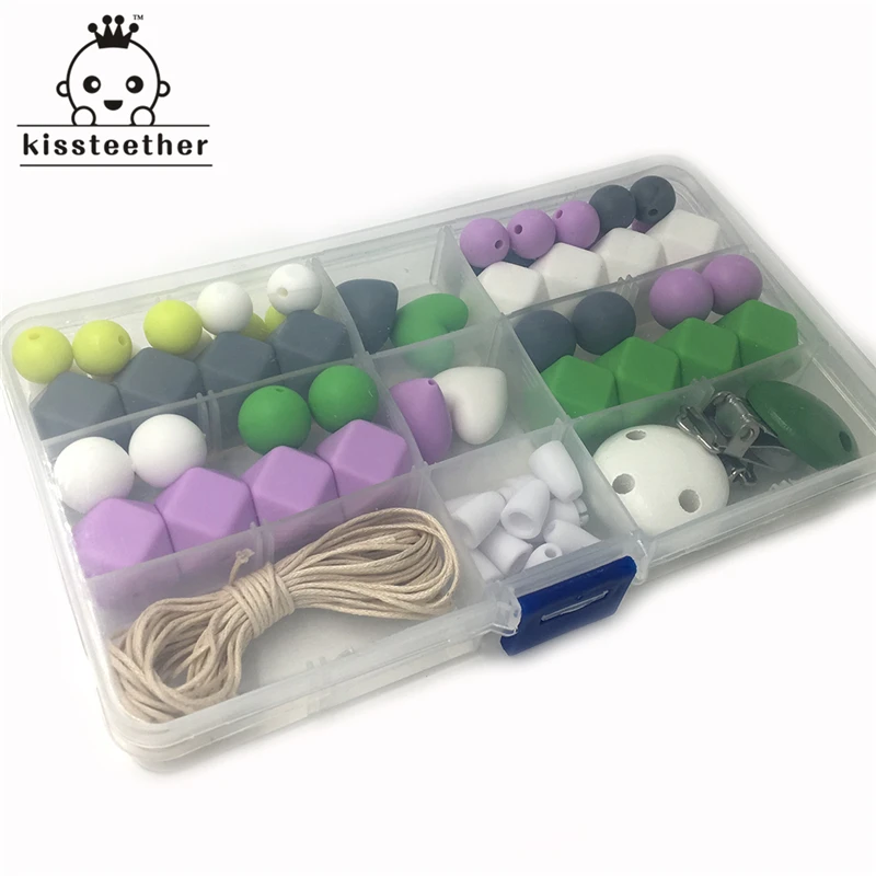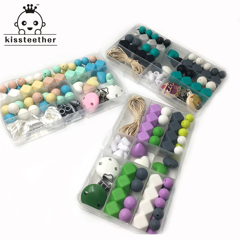 3 коробки, Детские Прорезыватели для зубов, яркие цвета, Силиконовый Набор для прорезывания зубов, геометрические шестиугольные силиконовые бусины для вязания крючком, Прорезыватель зубов сделай сам для кормления
