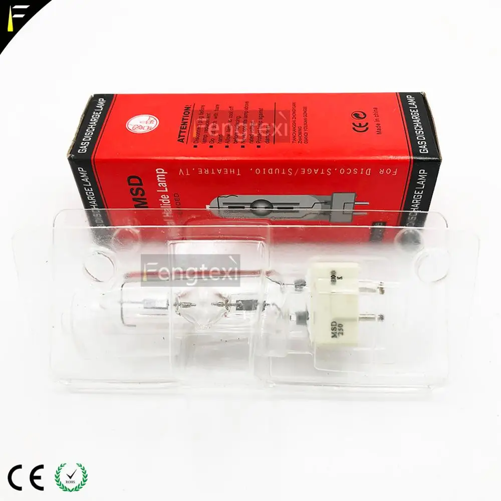 MSD200 подходит для сцены, движущейся головсветильник свет, сканирусветильник, волшебный свет Модель: MSD200W Номинальная мощность: 200 Вт Номинальное напряжение: 90 в Номинальный ток: 3,5 Световой поток: 20000 Цветовая температура: 6500 К Индекс цветопередачи: 80 Средний срок службы: 2000 часов Максимальная длина: 105 мм Максимальный диаметр: 16 мм Длина: 105 мм