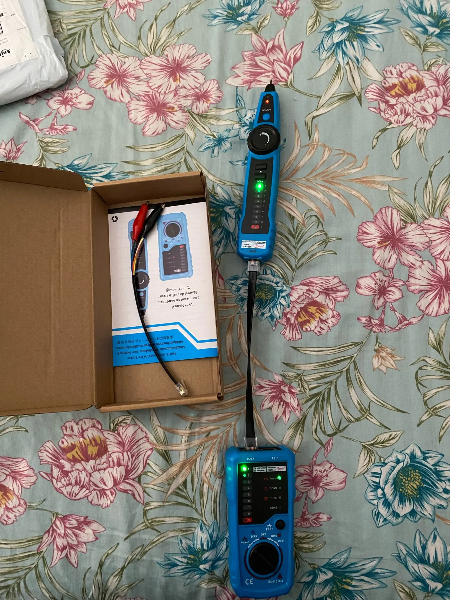 Доставка курьером, довольно быстрая. Трекается плохо, да оно и не очень то надо. Упаковано в картонную коробку. Инструкция на четырех языках, но русского нет - это плохо, так считаю. Батареек в комплекте поставки нет. Для экспресс-доставки можно было бы добавить элементы питания бюджетного класса. Кабельный тестер проверил - гуд. Трассоискатель пока не тестил. Будут выявлены нюансы - дополню отзыв.