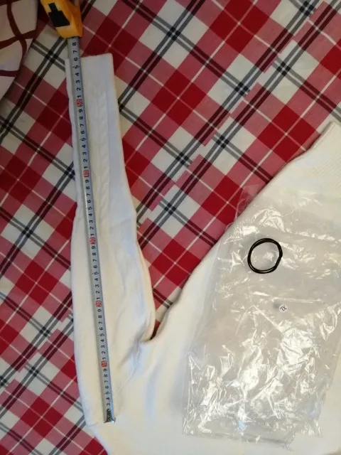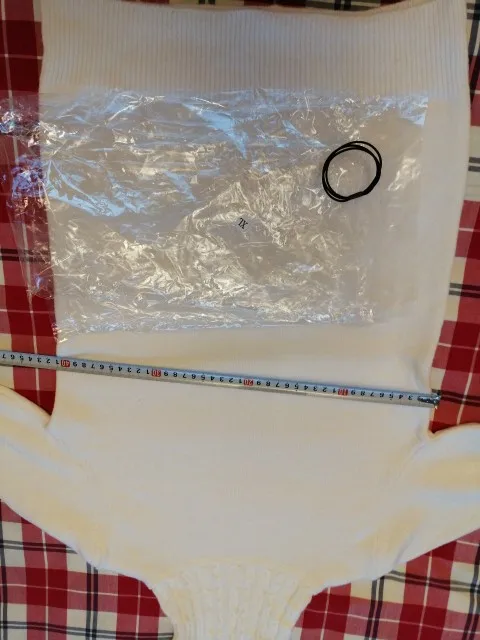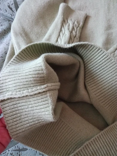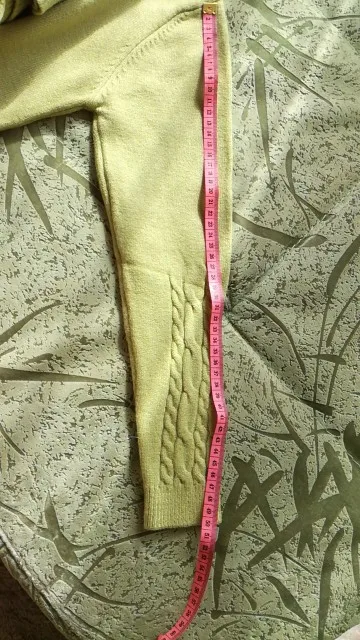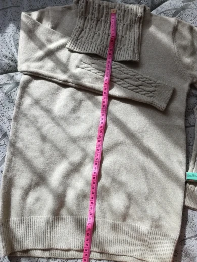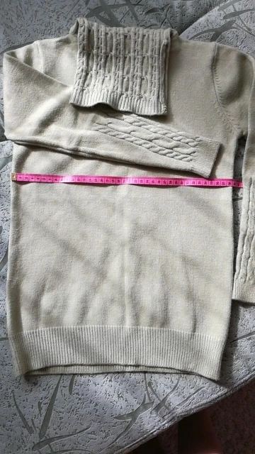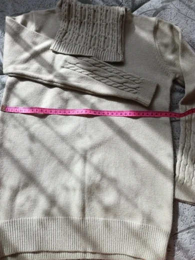 Свитер хороший, но размер XL на наш 46 впритык. Хотелось бы, чтобы выглядело как на фото продавца, но для этого нужен больший размер. На фото видны замеры полученного свитера.