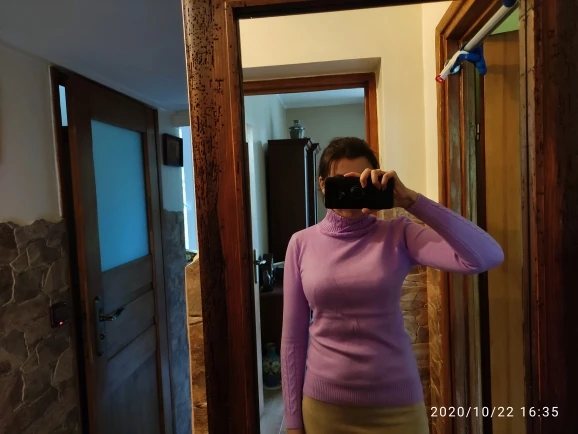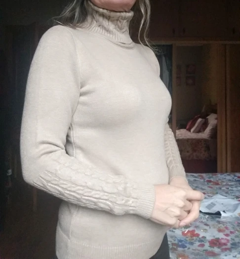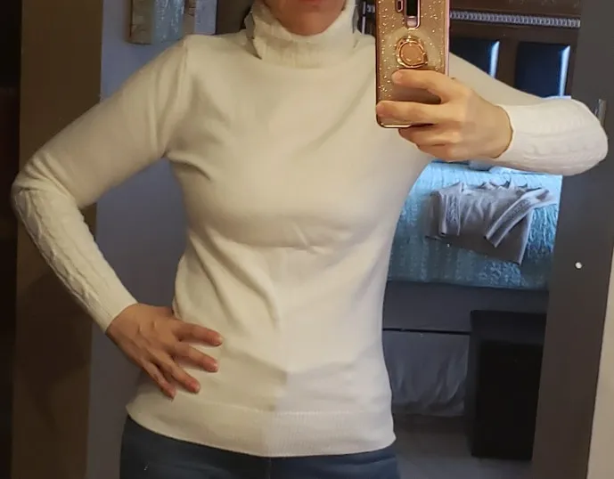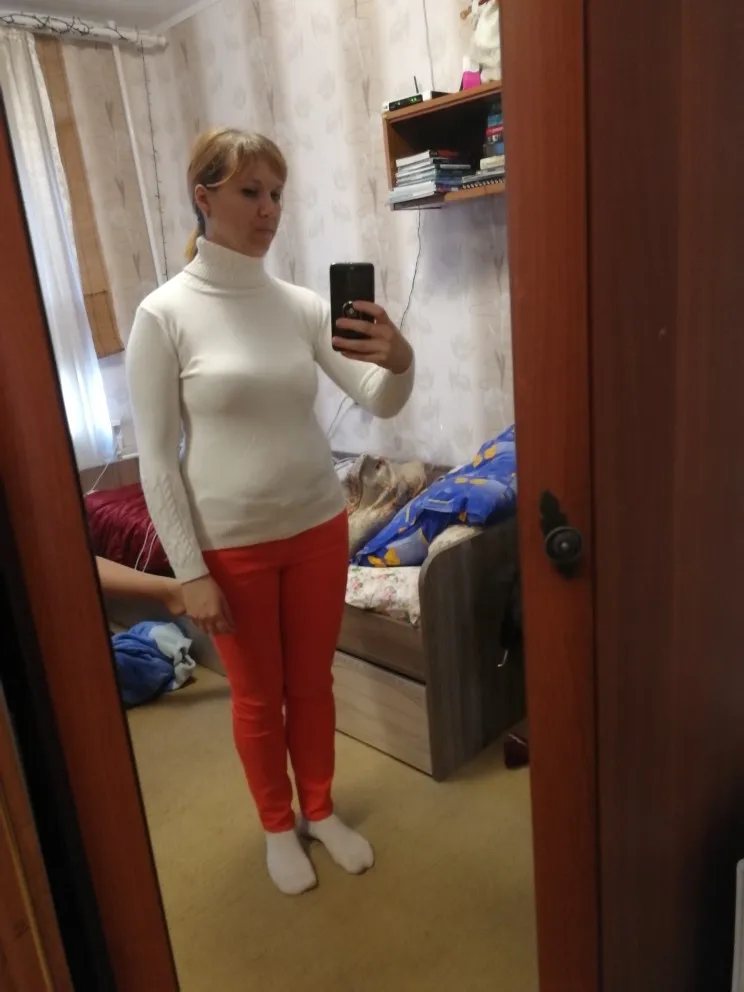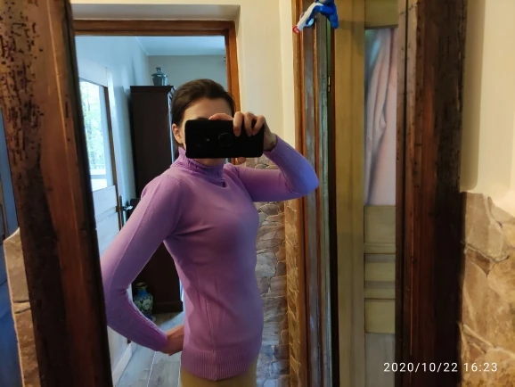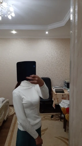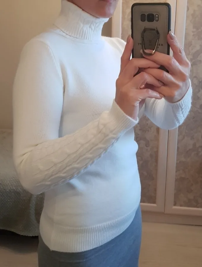 очень классная водолазка. мягкая и приятная к телу. не ожидала, что она будет на столько хороша. брала ее для прогулок с ребенком, но можно выйти и так куда-то. на свой размер S подошла L. меньше была бы в обтяг