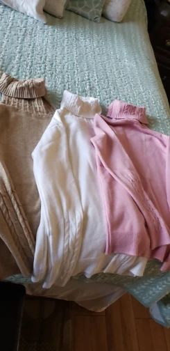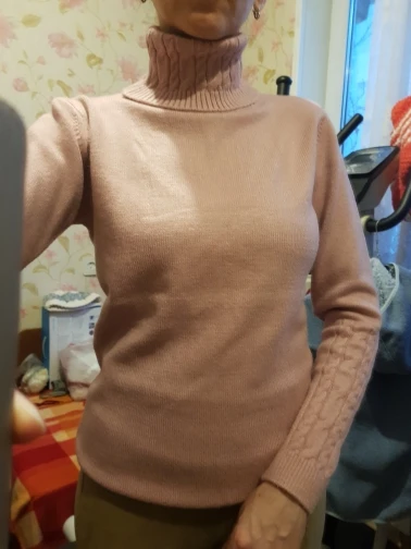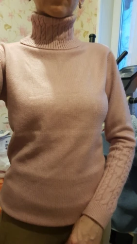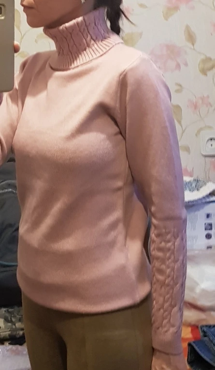 Уже проверенные водолазочки, заказываю в третий раз. Теплые, мягкие, комфортные, воротничок хорошо облегает шею, но не сдавливает. Рукава нормальные на рост 170. Объемный рисунок расправляется, выглядит симпатично. Катышки после нескольких стирок и долгого ношения появляются, я убираю их с помощью специальной машинки. Главное - тепло и уютно! Розовый цвет очень приятный, не яркий и не бледный. Рекомендую! Для сравнения 3 цвета: лаванда + белый + розовый.
