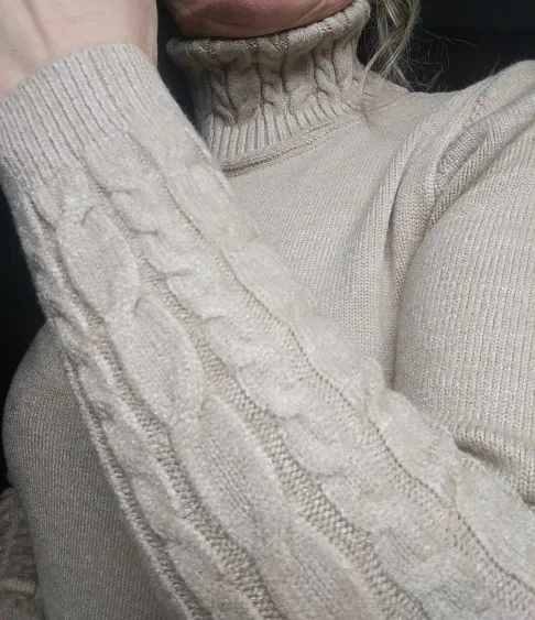 Доставка до Санкт-Петербурга около 2х недель. Khaki + XL на ОГ=96, ОТ=80 сидит нормально, но хотелось бы чуть свободней. Цвет не совсем соответствует. На фото продавца это холодный оттенок: бежево-серый, а в реальности - теплый, бежево- горчичный(см. первое фото). В целом водолазка теплая, хорошая.