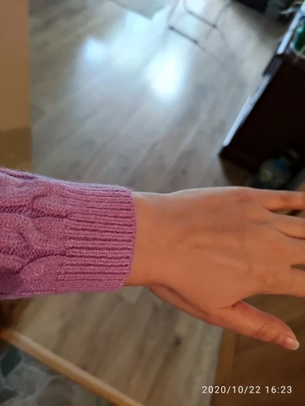 Красивый свитер. Розовый цвет намного темнее, чем на картинке. Хотелось бы, чтобы он был легче. Фото неточно. Еще хороший продукт.