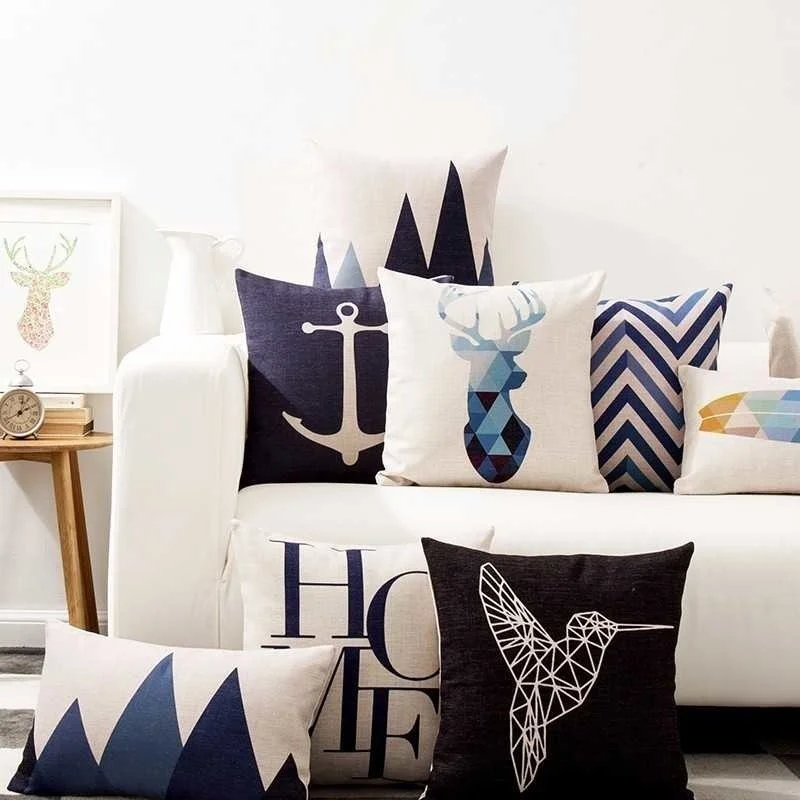 Декоративный чехол для диванной подушки, геометрический красочный чехол с животными, оленем в скандинавском стиле, хлопковая льняная наволочка для дивана, домашний декор