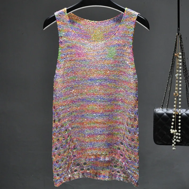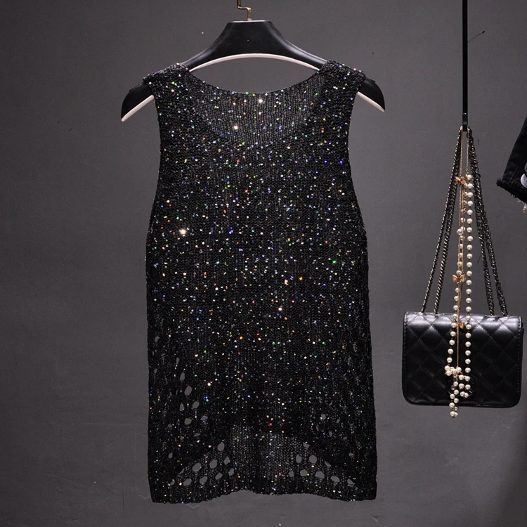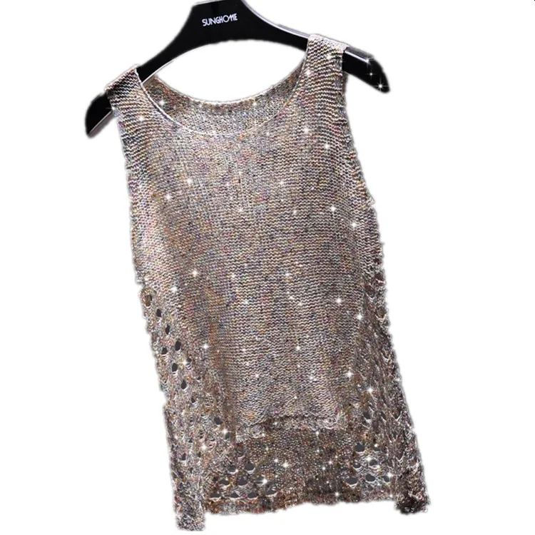 Новинка 2020, сексуальные блестящие золотые блестящие вязаные майки, женские Серебристые блестящие майки, женские блестящие вязаные майки, топы