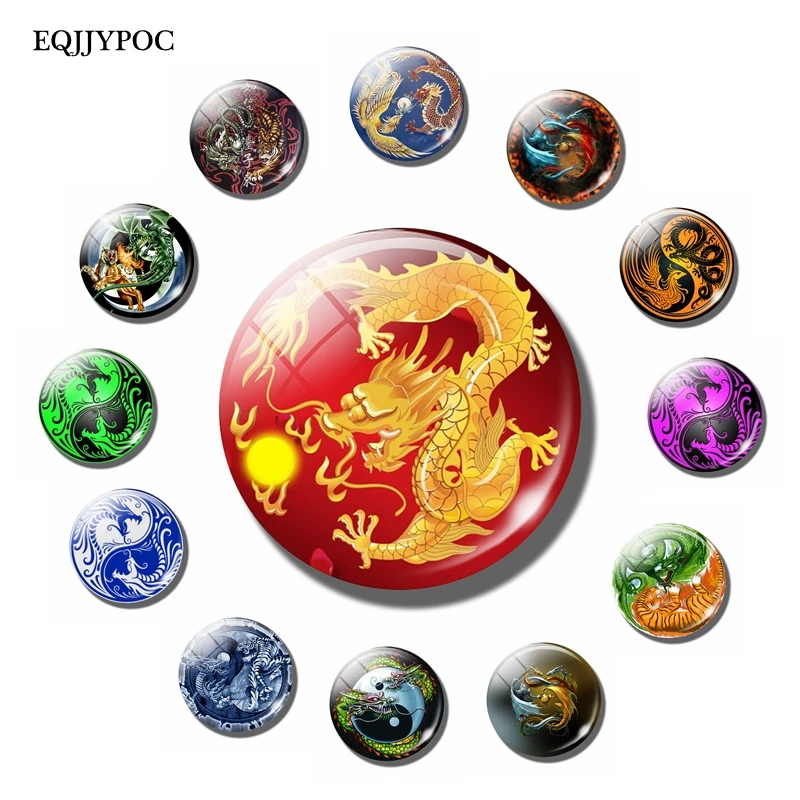 Дракон и солнце 30 мм магнит на холодильник Астрология Знак зодиака культура стеклянный купол магнитные наклейки на холодильник держатель для заметок домашний декор