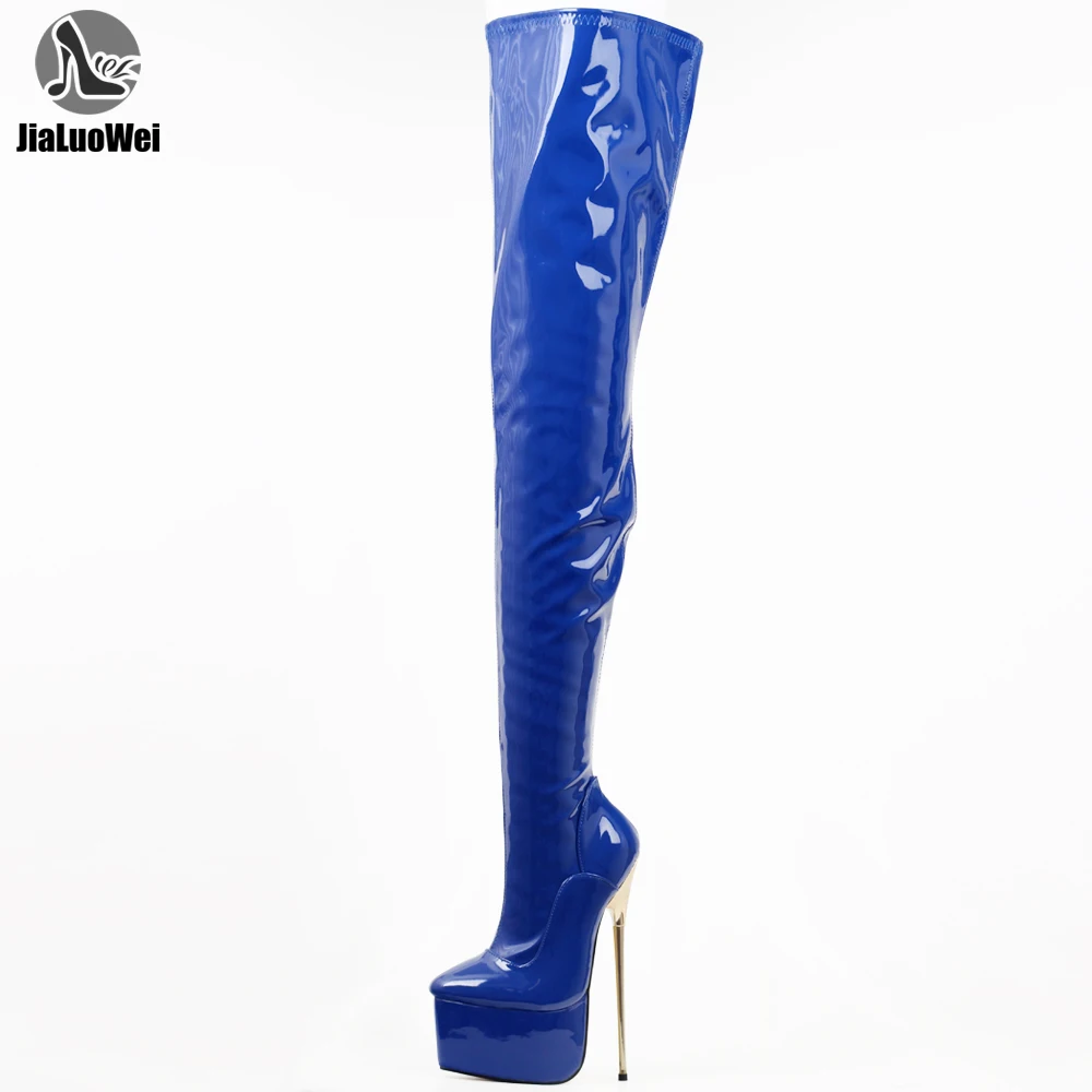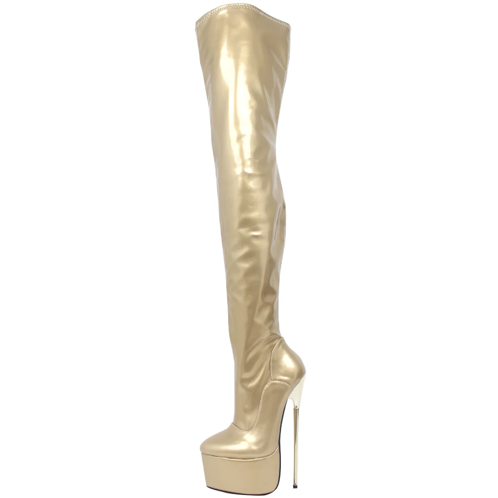 Jialuoweiженские сапоги до бедра на платформе 22 см, на очень высоком каблуке, с золотистым металлическим каблуком, пикантные Сапоги выше колена для вечеринки
