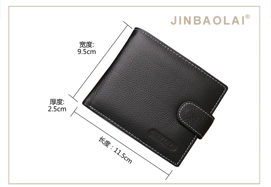Мужской кожаный кошелек JINBAOLAI, однотонный, стильный, на молнии