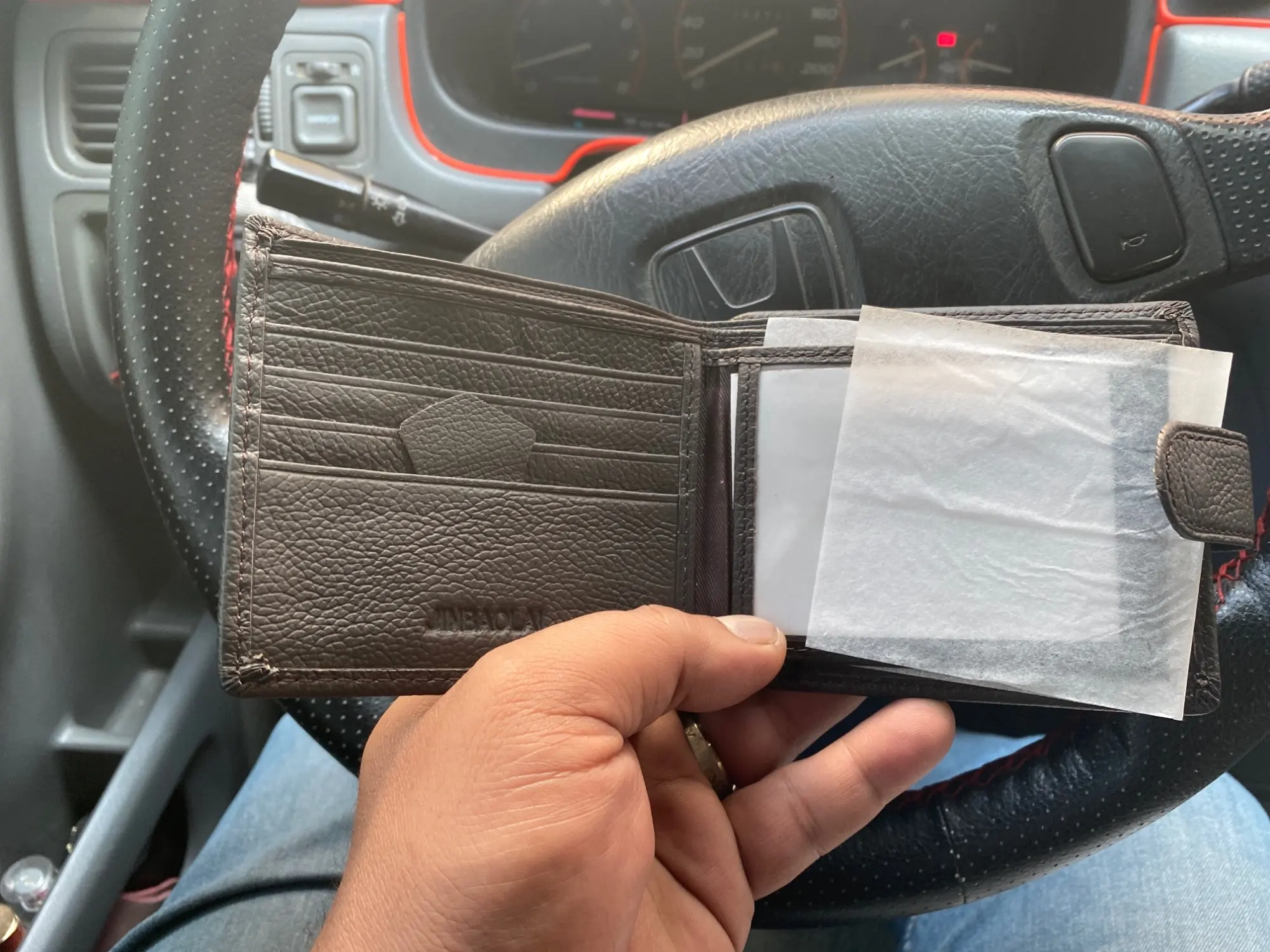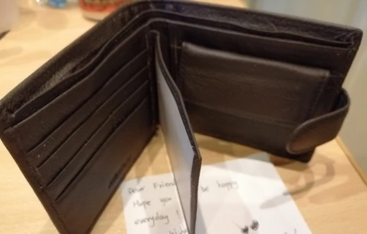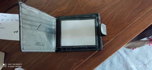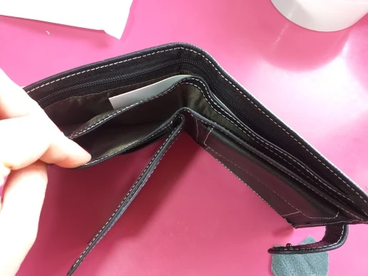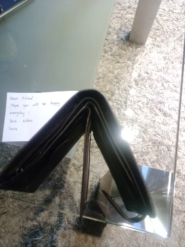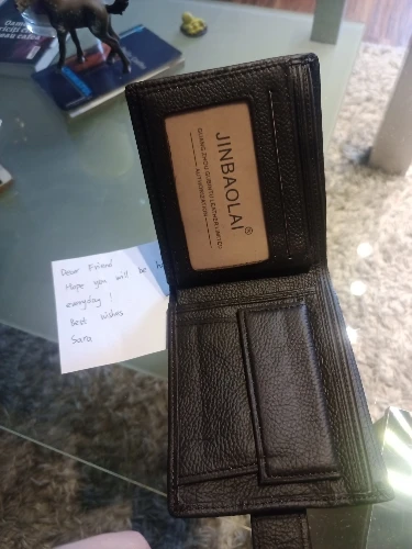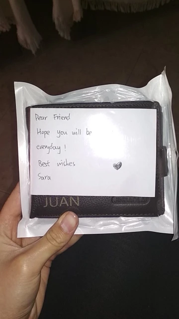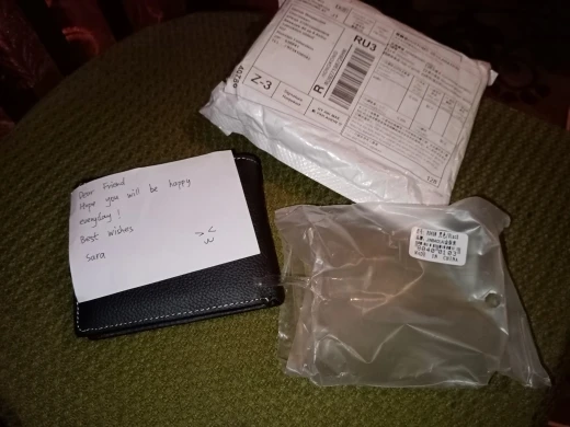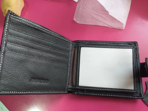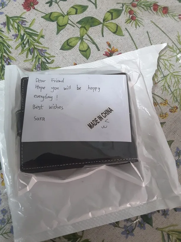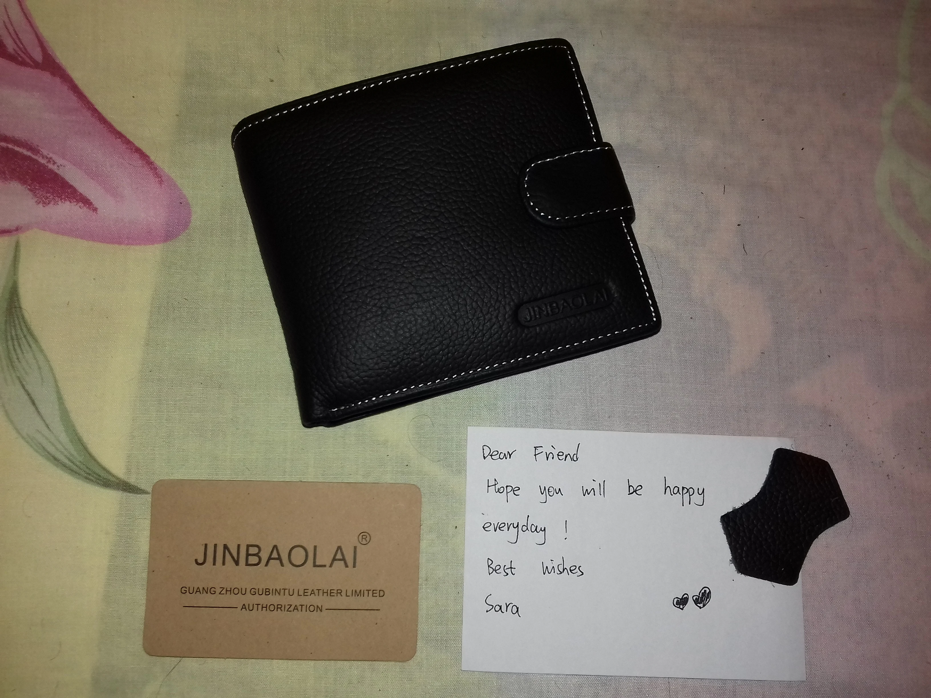 Покупкой доволен. Пользуюсь со второго дня как получил, и уже недель две... Достав в магазине для оплаты на кассе, иногда через маску ощущается запах нового кошелька (не скажу что вонючий. Просто запах нового). Строчка ровно сделана. В целом на вид хорошо сделан. Плюс так как это моя первая была посылка с Али, то было очень приятно было ещё и получить написаны от руки хорошие пожелания от продавца Sara )))))
