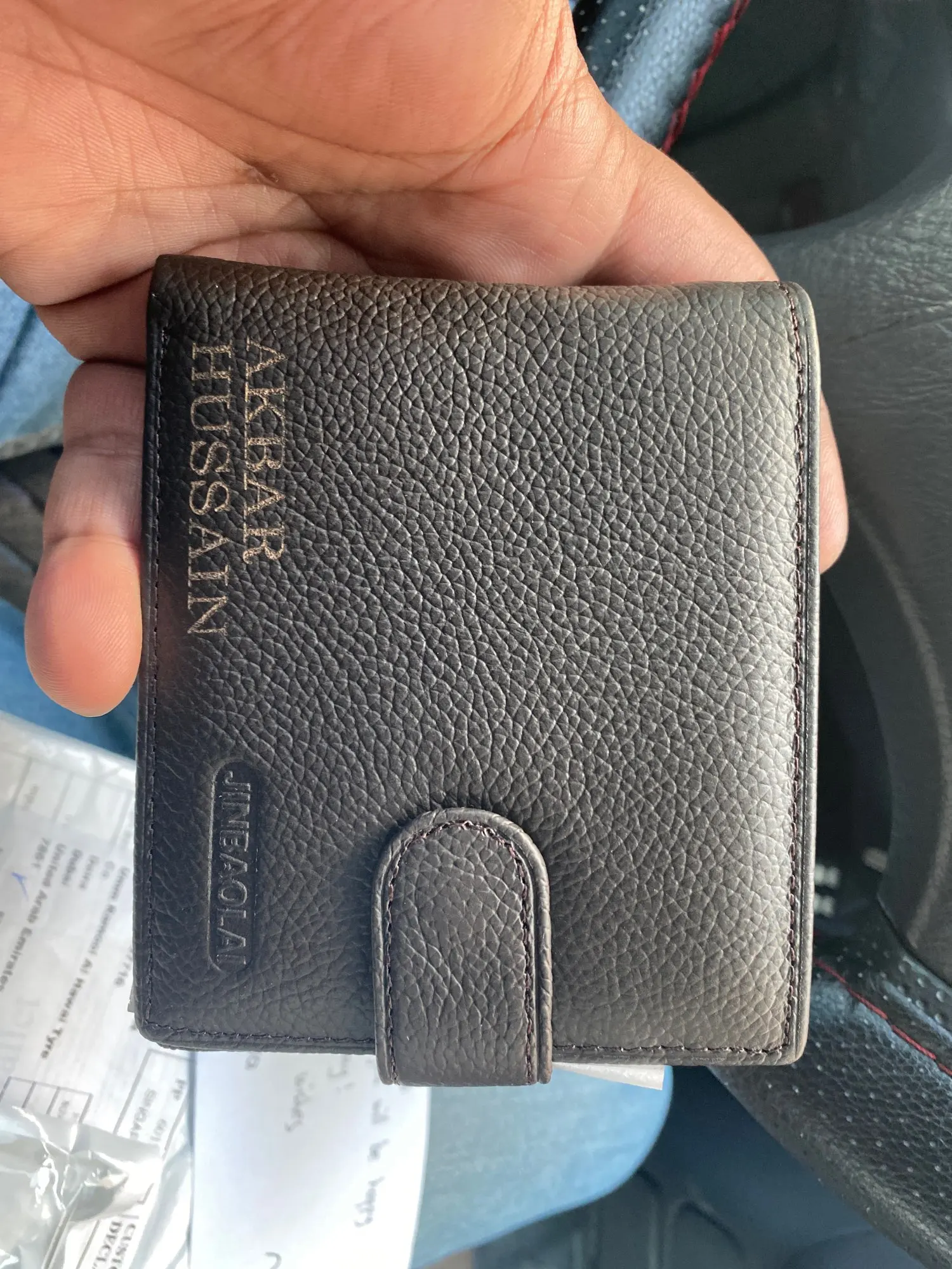 Кошелёк симпатичный, лёгкий качественно сделан, но это никакая не натуральная кожа, как заявлено. Это хороший кожзам. Никакого кусочка кожи, показанного в ролике нет в помине. Зато есть синтетический запах, правда небольшой. Гравировку сделали без ошибок, хотя фамилия непростая для написания. Спасибо. Я доволен, но для кожзаменителя дороговато