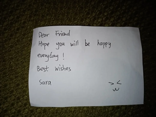 Спасибо! Хороший товар. Очень милая записочка от продавца:)