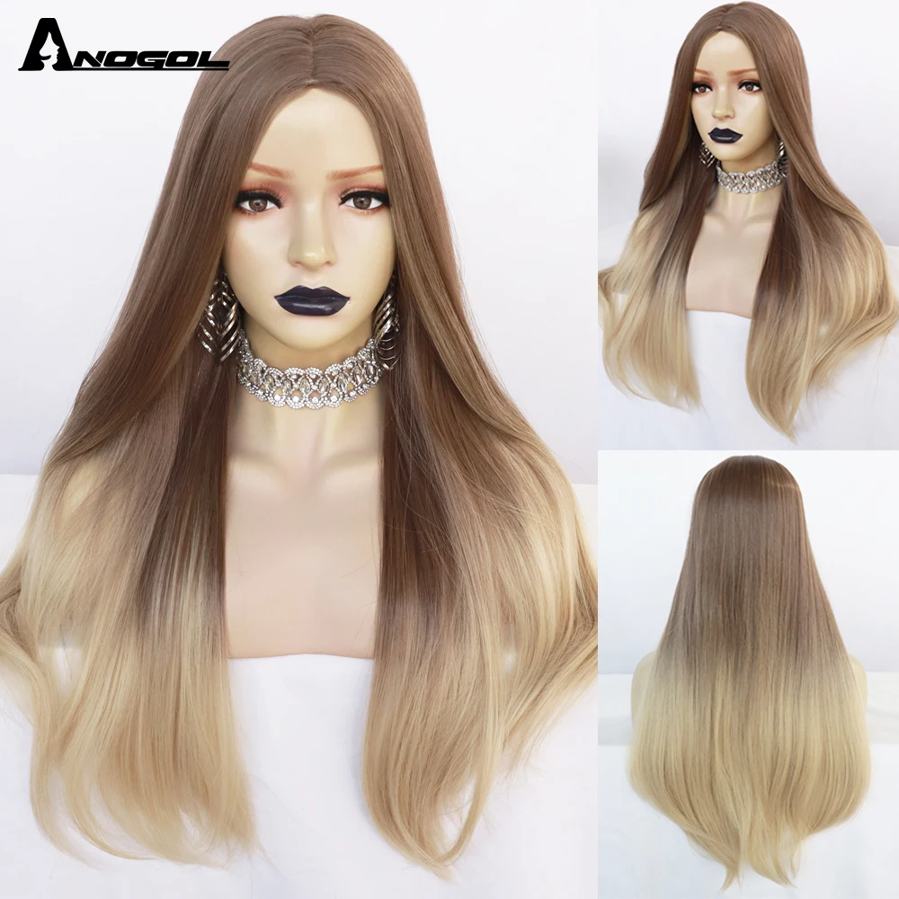 Аногол длинные коричневые блонд синтетические парики средняя часть парики для женщин тренд ежедневно...