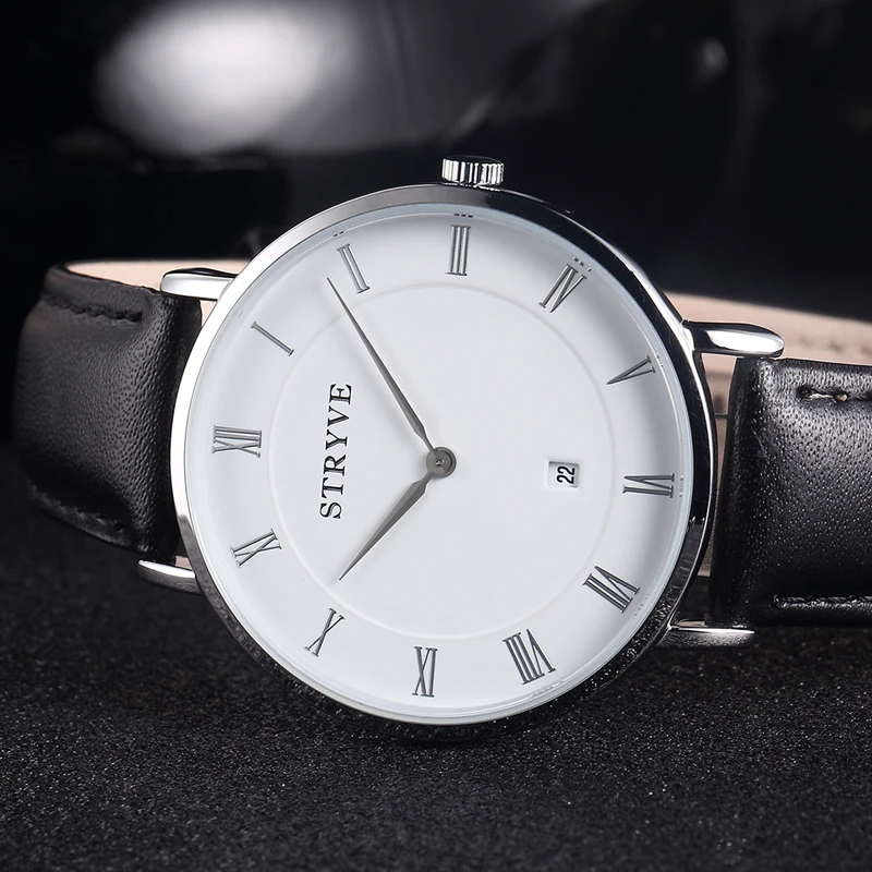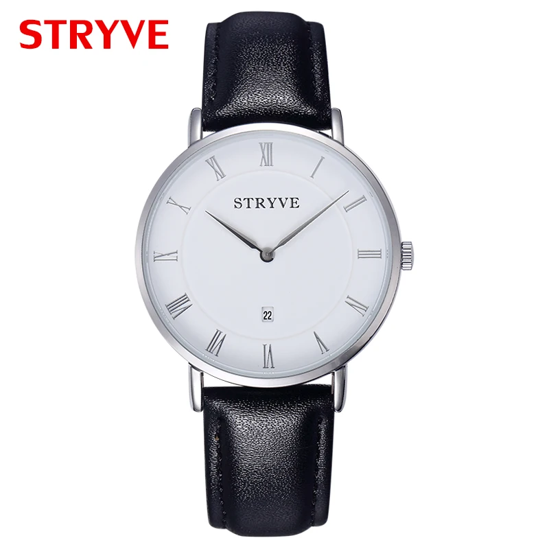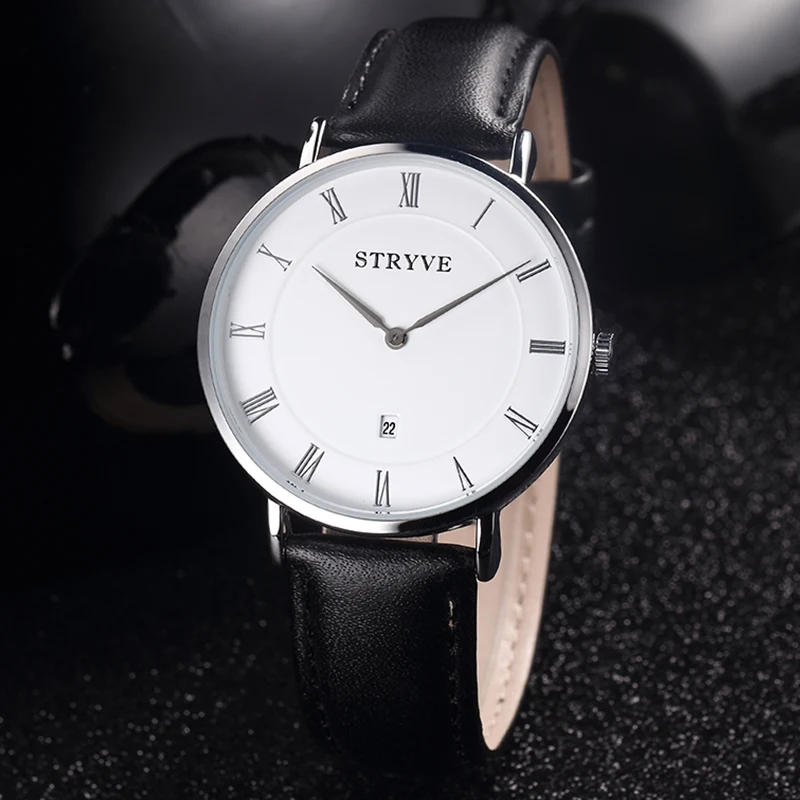 Montre Stryve Брендовые женские часы минималистичные простые ультра тонкие часы с циферблатом 2 руки Роскошные из натуральной кожи водонепроницаемые кварцевые мужские часы