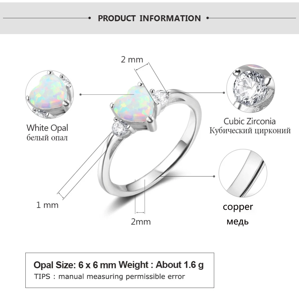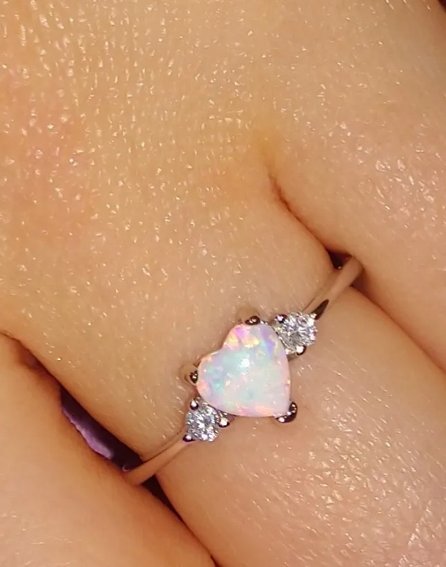 Женское кольцо с опалом, классическое кольцо с вечным сердцем серебряного цвета, голубого, розового, белого цветов, обручальное кольцо, модные украшения для женщин
