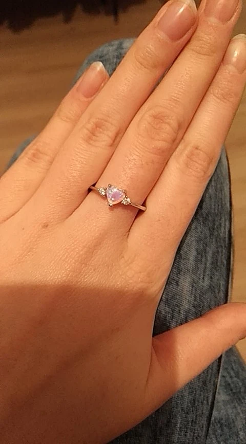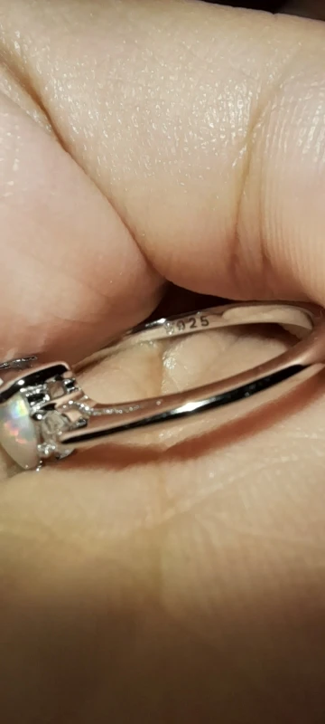 Доставка занимает около трех недель, и когда он прибыл, все было хорошо упаковано, и ничего не было согнуто. Я случайно купил на один размер слишком большой для своих пальцев, но я в буквальном стиле люблю это кольцо, потому что оно такое красивое. Камень сам по себе блестит во многих цветах, а также есть S925 гравировка внутри кольца, чтобы показать, что это настоящее серебро.