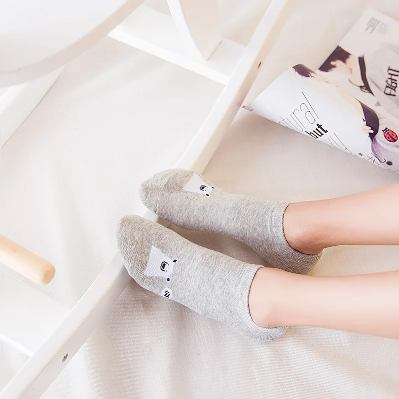 Хлопковые удобные женские носки-лодочки с рисунком животных для дев...