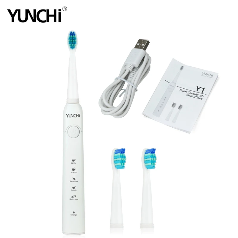 Зубная щетка yunchi Y1, Ультразвуковая электрическая зубная щетка с зарядкой от USB, со сменными насадками, Seago 507