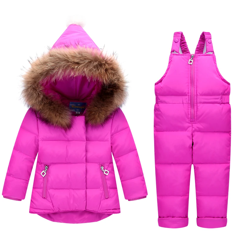 2020 г. Зимние комплекты детской одежды комбинезон, зимняя куртка + комбинезон комплект из 2 предметов для маленьких мальчиков и девочек, куртка на утином пуху с меховым капюшоном