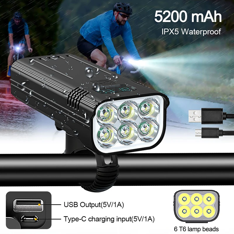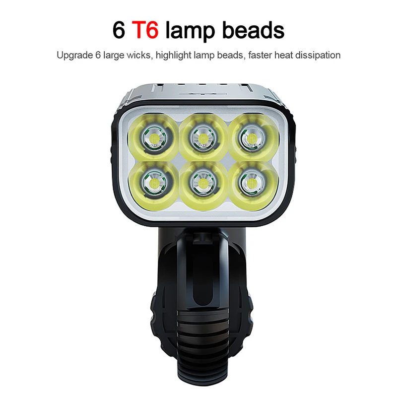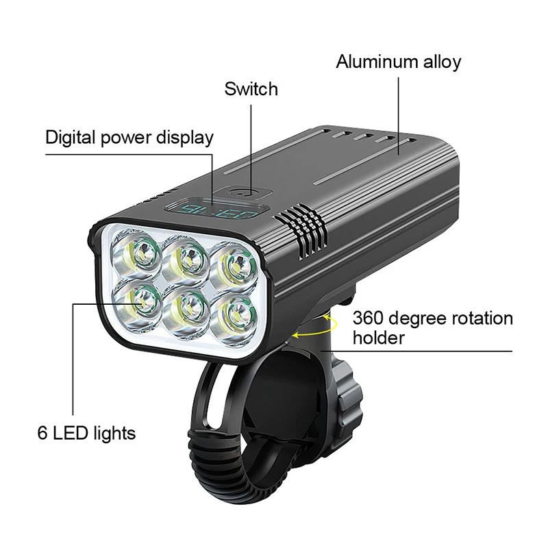 1. Материал: используется высококачественный корпус из алюминиевого сплава с отличной ударопрочностью, теплоотдачей и устойчивостью к падению.2. Процесс: обработка поверхности анодным окислением, водонепроницаемость и устойчивость к коррозии.3. Люмены: яркость очень высокая, максимальная мощность составляет около 3600 люменов, а 6 светодиодный ламп охватывают широкий диапазон, что позволяет видеть более широкий и Дальний диапазон при езде ночью.4. Метод зарядки: умная зарядка через USB, Совместимость с несколькими способами зарядки. Встроенный аккумулятор 5200 мАч, usb-выход может использоваться в качестве мобильного источника питания, при необходимости он используется для экстренной зарядки мобильных телефонов и других устройств.5. Регулируемый кронштейн: вращающийся на 360 градусов быстросъемный кронштейн может надежно зафиксировать руль, не беспокоясь о его падении. Подходит для рулей 20 ~ 36,5 мм, прост в установке, никаких инструментов не требуется6. Светильник ing режим: 5 уровней светильник ing режим (высокий светильник Высокий/низкий светильник/средней светильник/стробоскопический/тревога), одна кнопка для переключения,7. Подходит для: верховой езды, кемпинга, ночной рыбалки, прогулок и других сцен.