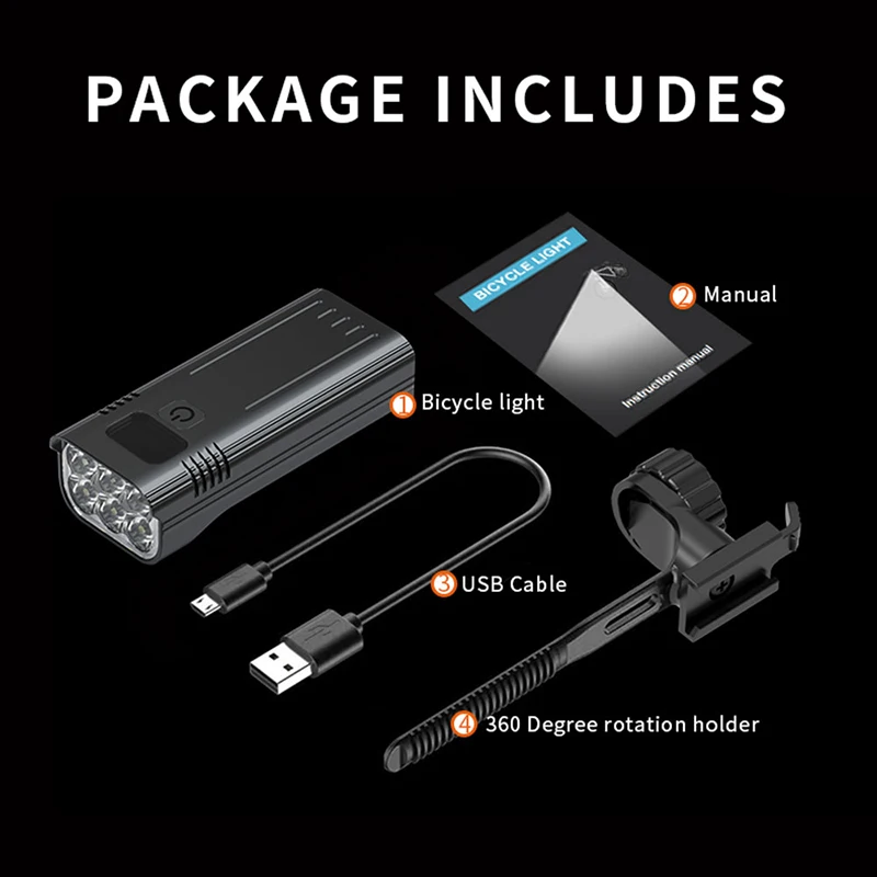 1 * велосипедная фара1 * крепление на руль1 * USB линия