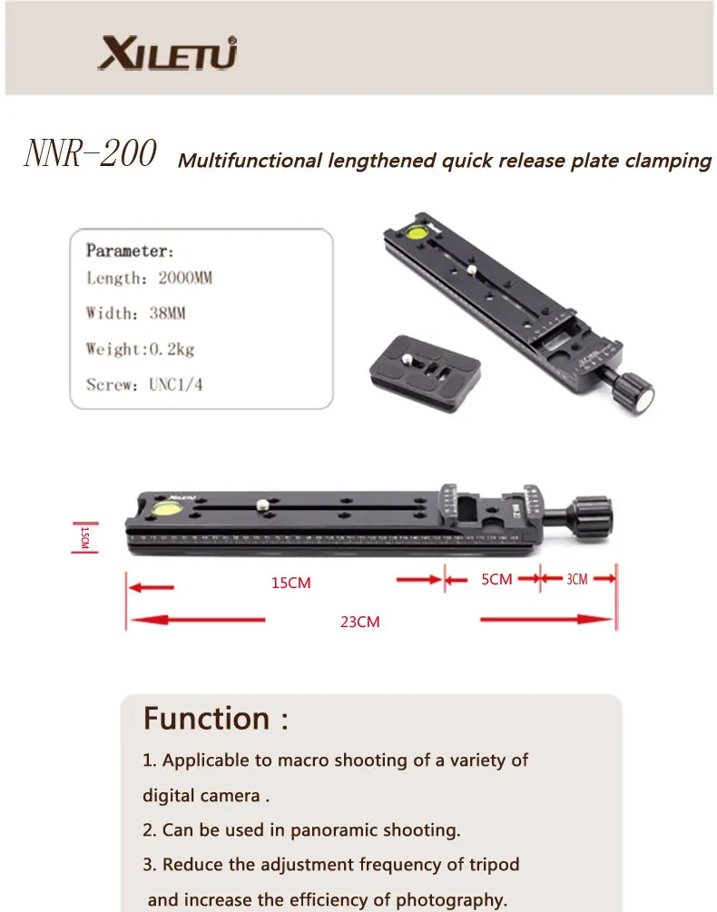 Многофункциональная удлиненная быстросъемная пластина XILETU NNR-200, зажим, шаровая Головка для штатива камеры Arca Swiss