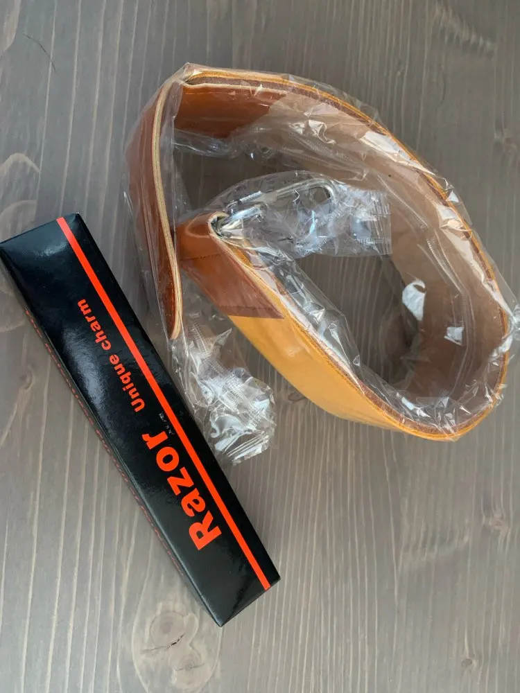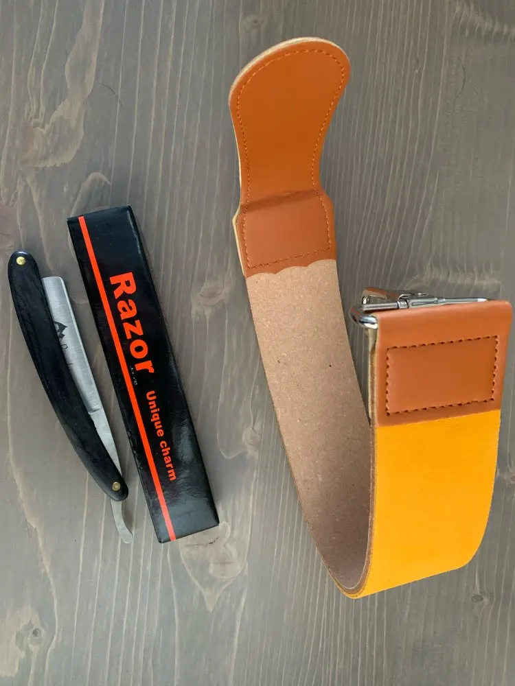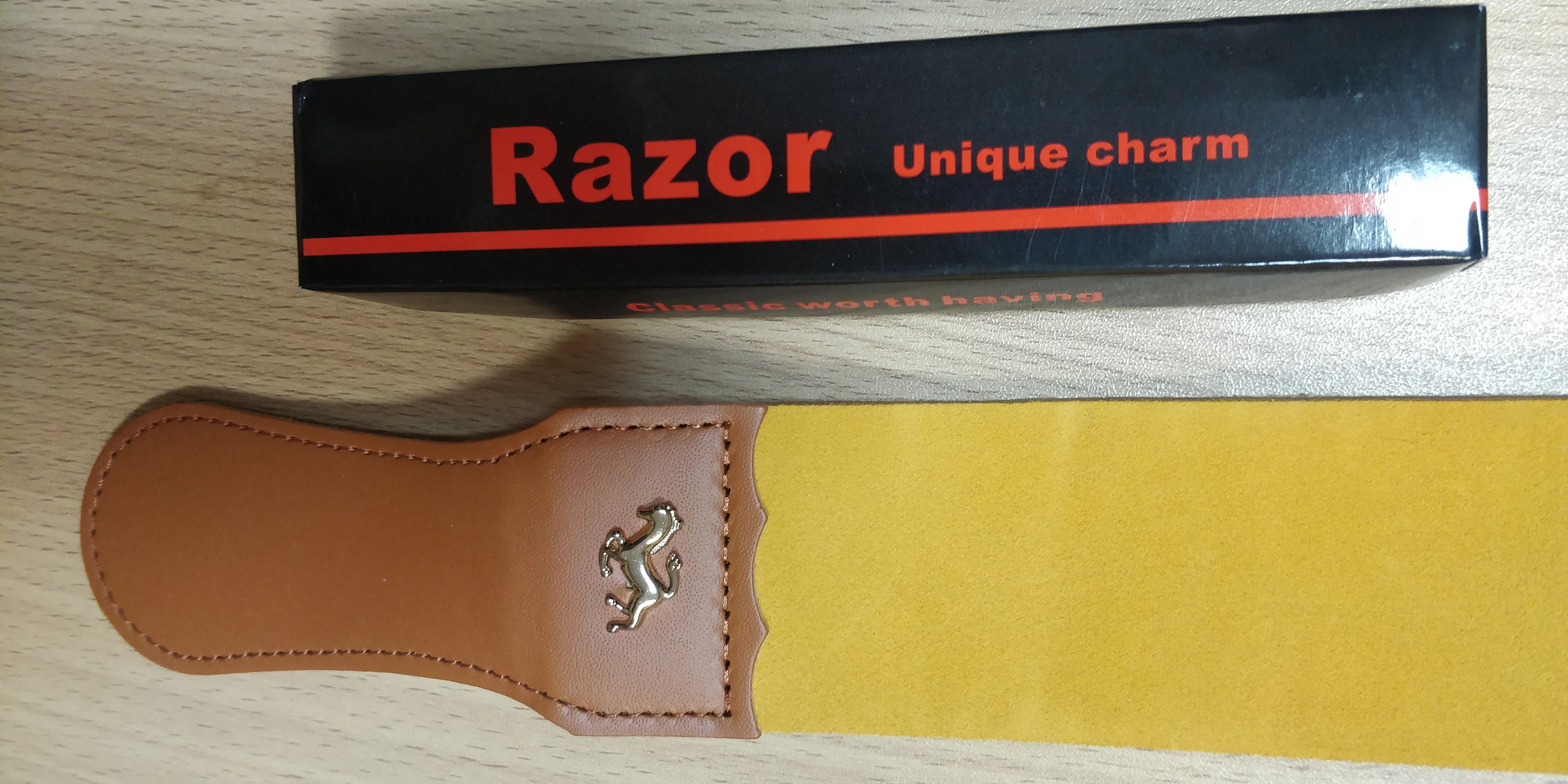 Бритва пришла в Москву за 20 дней. Заводская заточка позволяет слегка довести режущую кромку на ремне и начинать бриться. У ремня две стороны с разной жёсткостью, что довольно удобно