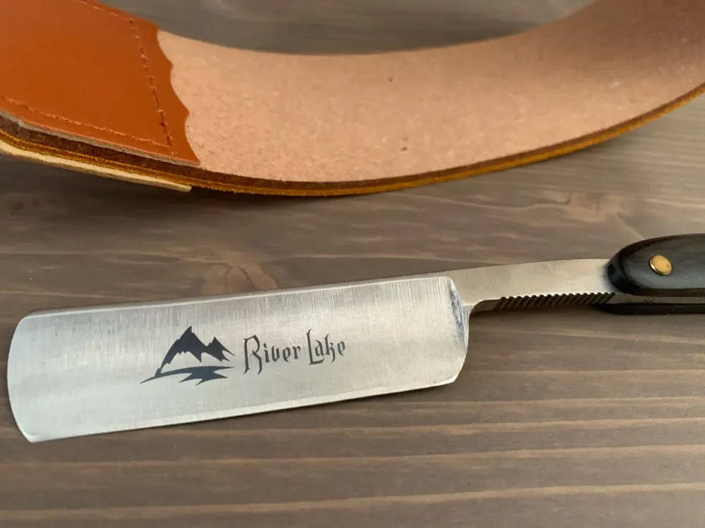 Набор для бритья с прямым лезвием для реки, озера, лезвие с прямым лезвием, ручка для бритья, ручная работа, деревянная ручка, кожаный бритвенный строп