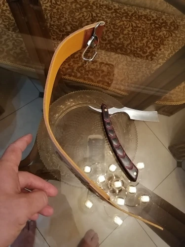 Ручная бритва, которую можно заточить с помощью кожаного куска, полученного при заказе! Бритва складывается на себя, чтобы хранить и не повредить себя, не легко обрабатывать сначала! Для доставки в Бразилию требуется менее 4 недель