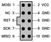 10-контактный AVR ISP заголовок также доступен через наш дополнительный Бесплатная 6-pin к 10-контактный ISP кабель