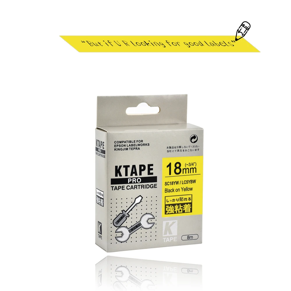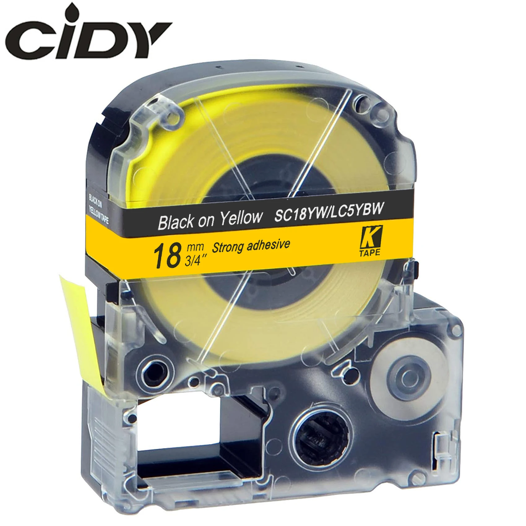 Лента для этикеток CIDY, 18 мм, черный на желтом SC18YWLC-5YBW, LC-5YBW9 лента для этикеток kingjimepson LW300, LW400, LW-700P, SR150