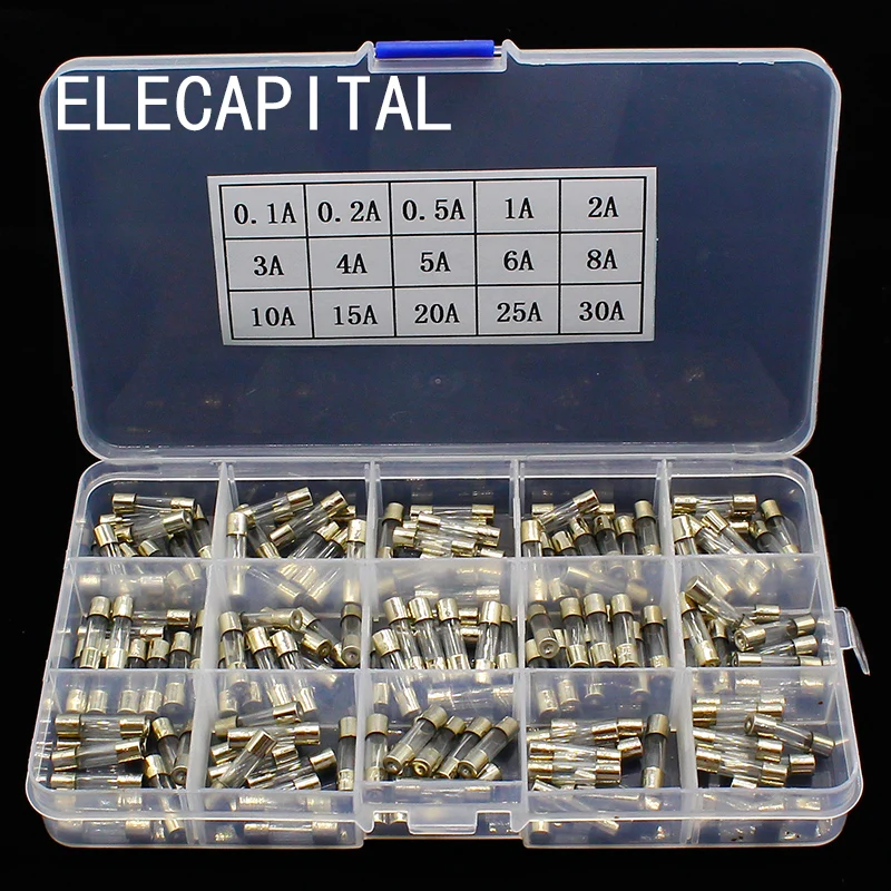 Стеклянные трубчатые предохранители, 5 х20, 15 видов, 150 шт., набор стеклянных трубчатых предохранителей стеклянная трубка в форме автомобиля, 5 х20 в коробке, бытовые предохранители 0,1a-30A