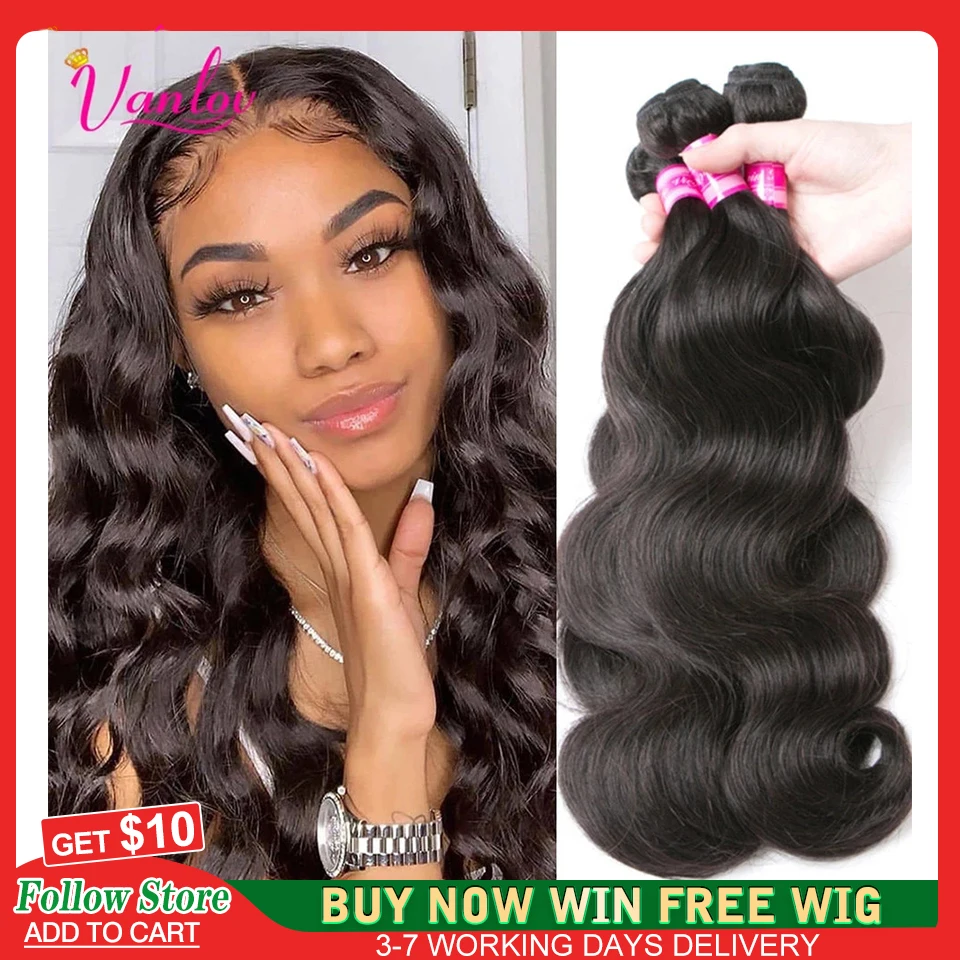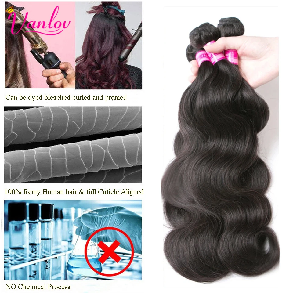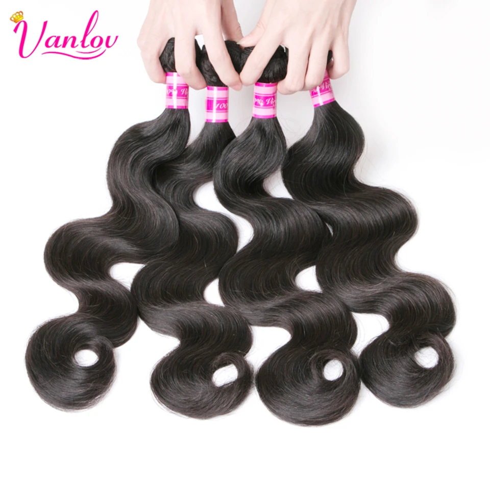 Vanlov, бразильские волнистые пучки волос, искусственные пряди, натуральные черныечерные 134 шт. 8-30 дюймов, наращивание волос Remy