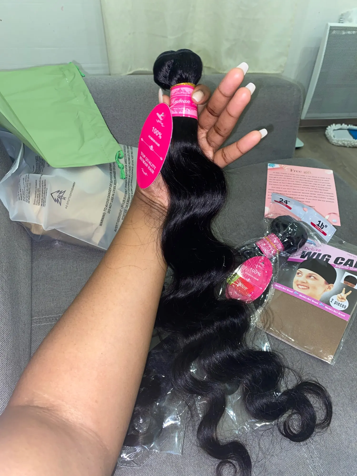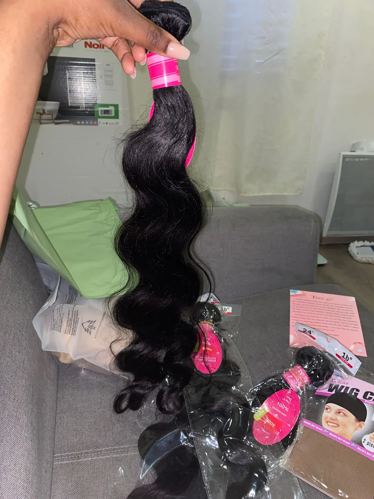 Получил 3 комплекта 20 22 24 дюйма и бесплатный подарок. Спасибо. Это идеально, 100% человеческие волосы, очень мягкие, почти не линяют, быстрая доставка, хорошее обслуживание клиентов