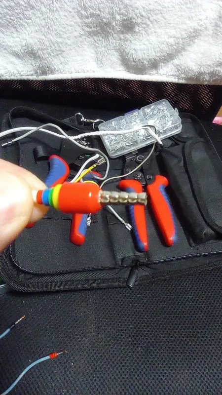 The crimp tool is very good. Squeezes so that the wire cannot be pulled out. Overall better than you might think. A bit awkward to hold in your hand, but you need to adapt. RU: Oбжимной инструмент очень хорош. Сжимает так, что провод нельзя было вытащить. В целом лучше, чем можно подумать. Немного неудобно держать в руке, но нужно приспособиться.