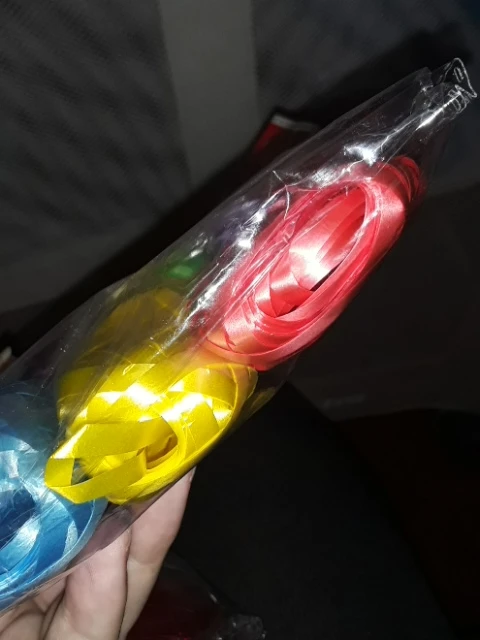 Я получил разные цвета, чем на фото. Я получил не белую ленту, а красную, которая не была на фото. Светло-голубой и пастельно-зеленый, были в реальной жизни более темными оттенками. Продавец сказал, что это из-за освещения, но это не было указано где-то в описании. И есть огромная разница между белым и красным, с моей точки зрения. Розовый и желтый цвета такие же, как на фото.