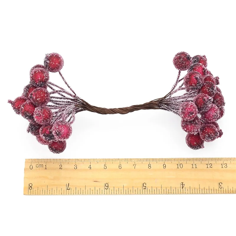 40 шт80 голова Искусственные пластиковые фрукты стеклянные ягоды Stamen букет украшения DIY Рождественская елка Двойные головки красная вишня