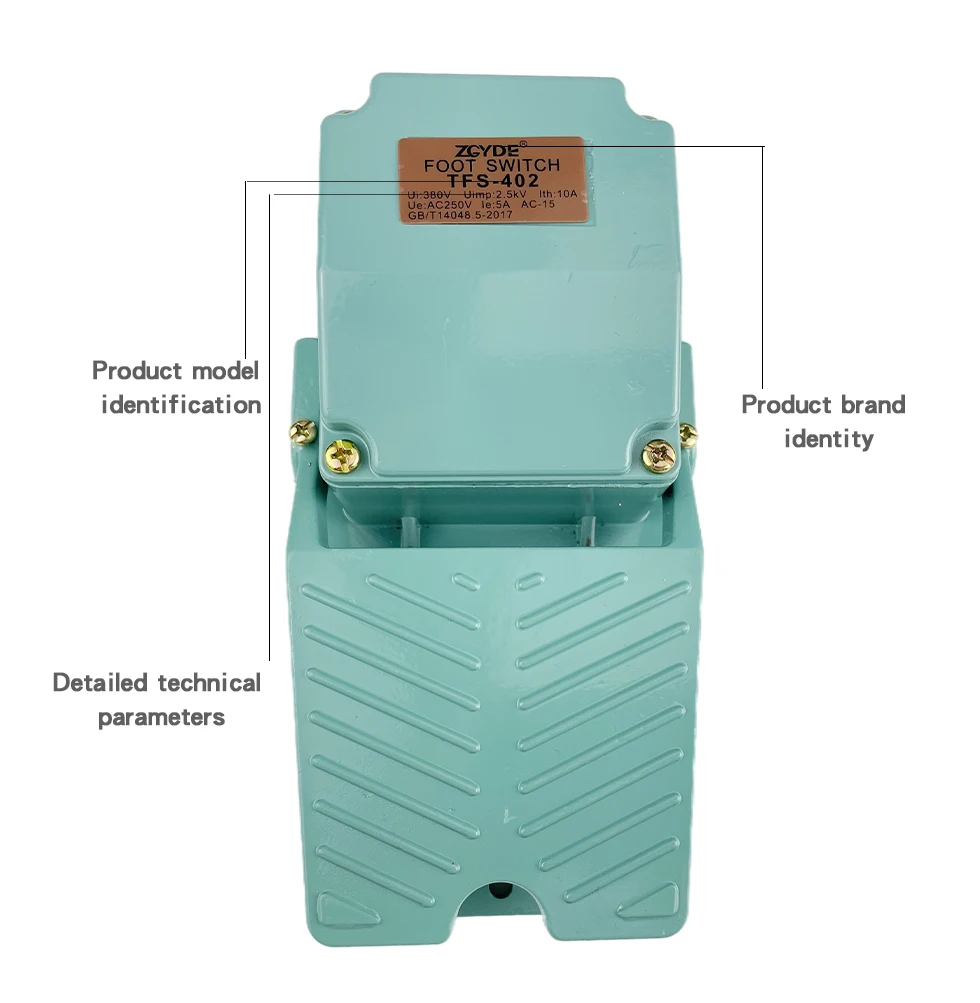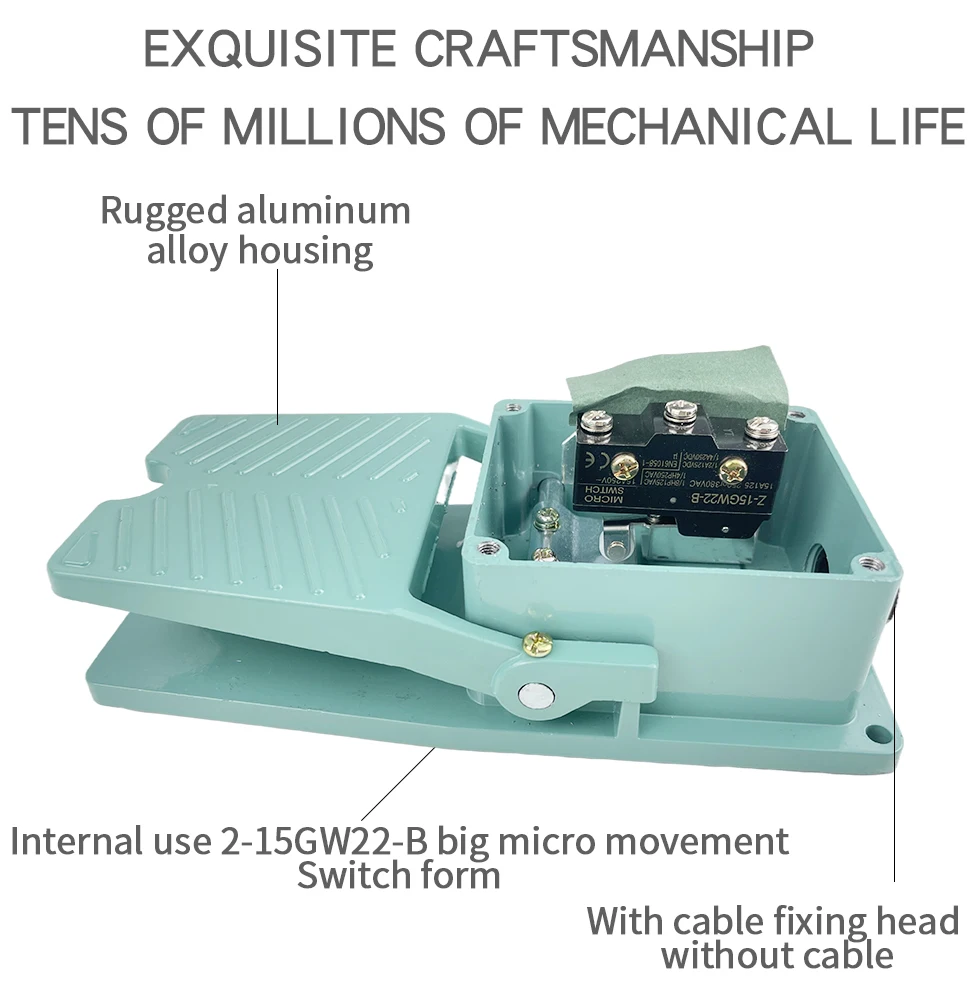 Педальный переключатель, 250 В, 15 А, 1 НЗ, TFS-402 зеленый